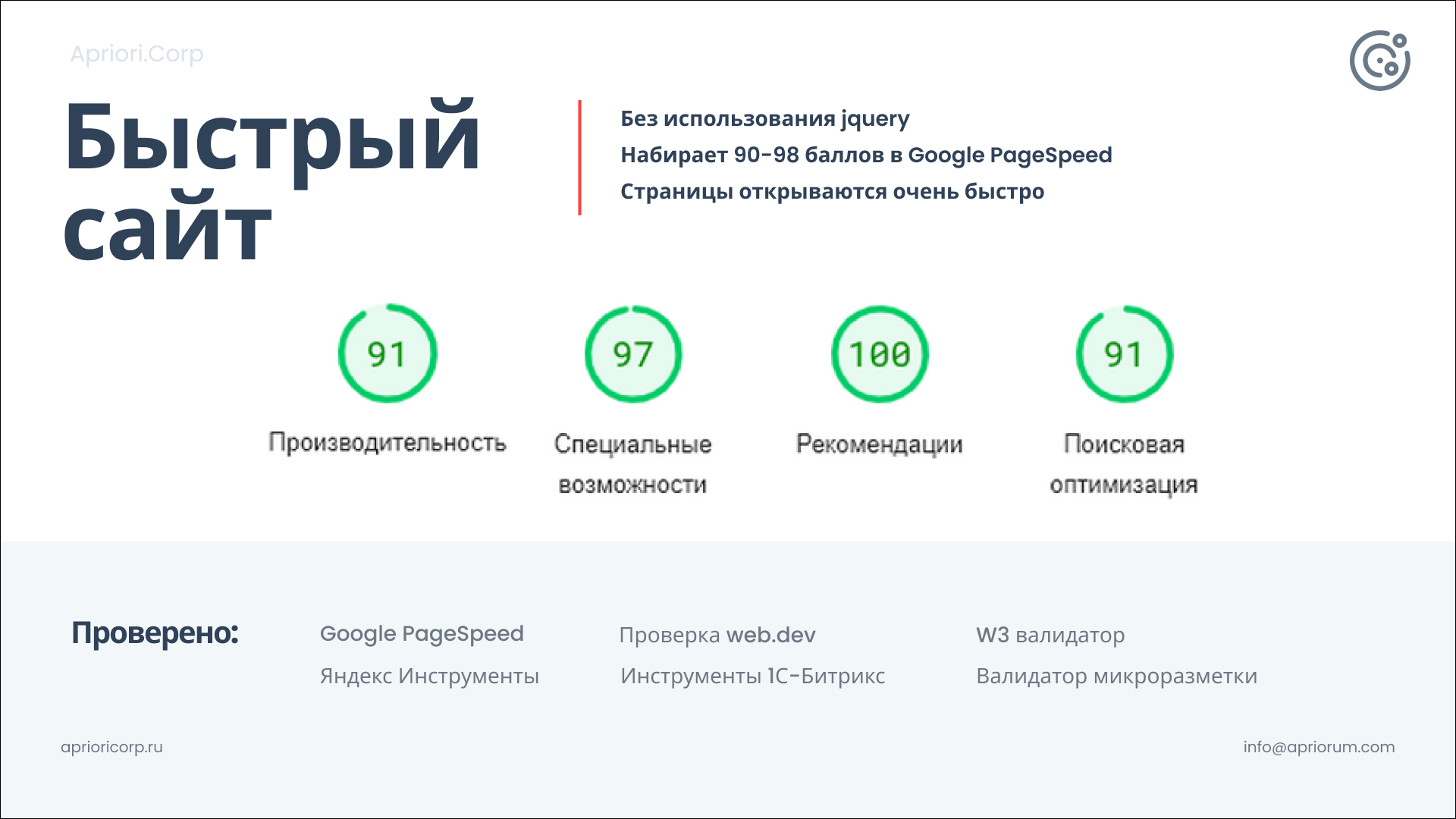 - Расширенные возможности перелинковки - различные варианты связанного у всех основных инфоблоков. Возможность информационного расширения страниц за счёт вывода связанной информации - отзывов, преимуществ, проектов, товаров и услуг, основных цифр, этапов, галерей, вопросов и ответов, и т. д. Вместо "простыней" текста - чётко структурированная информация.