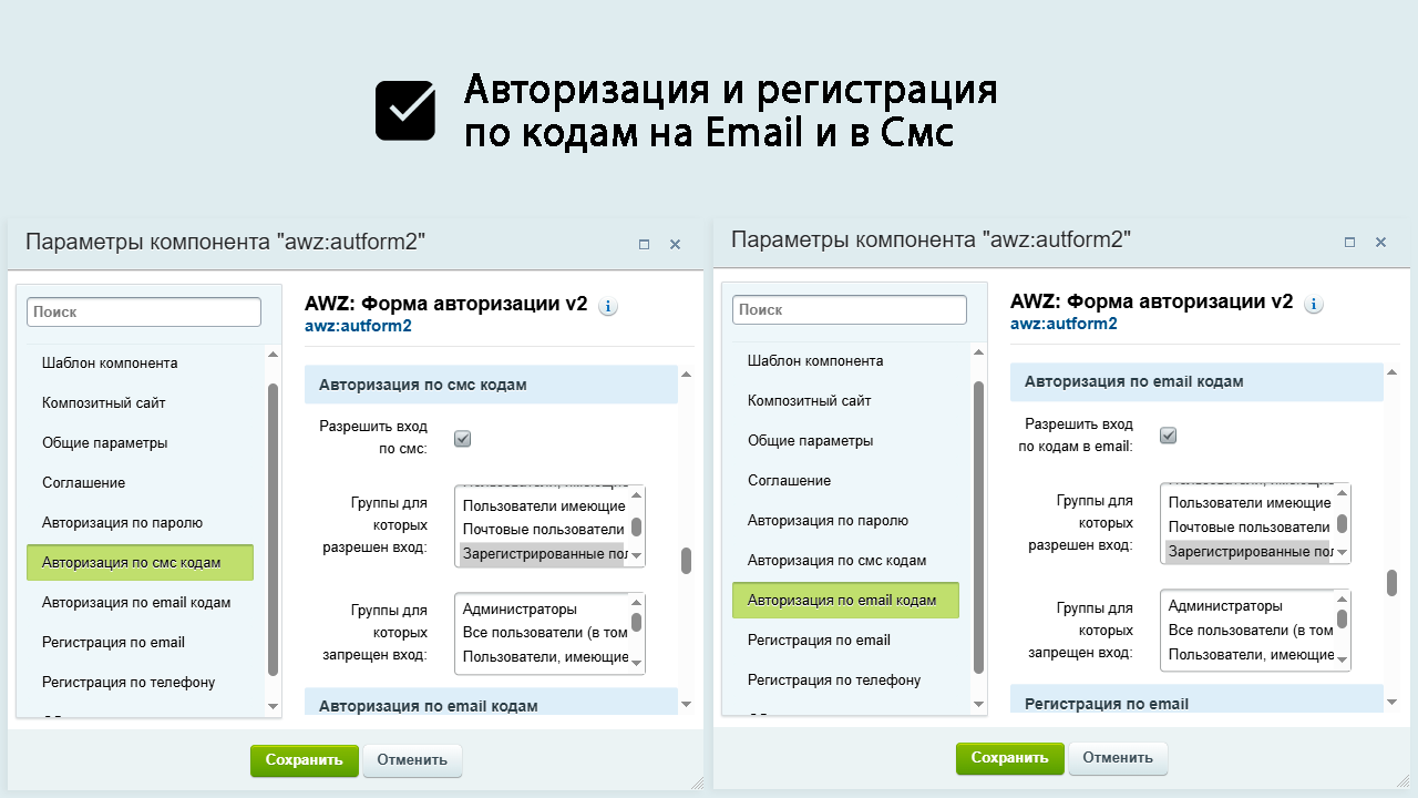 Возможность разрешить авторизацию через форму для отдельных групп пользователей