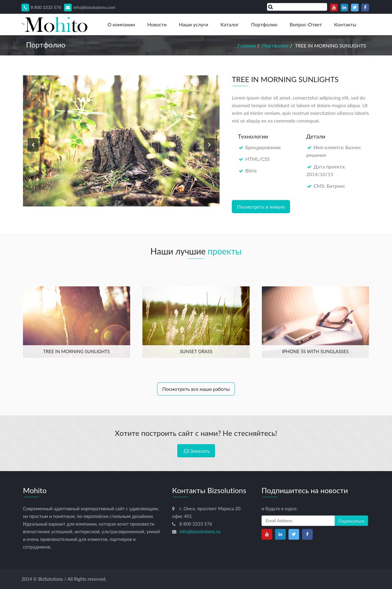 - Детальная страница элемента портфолио содержит:
