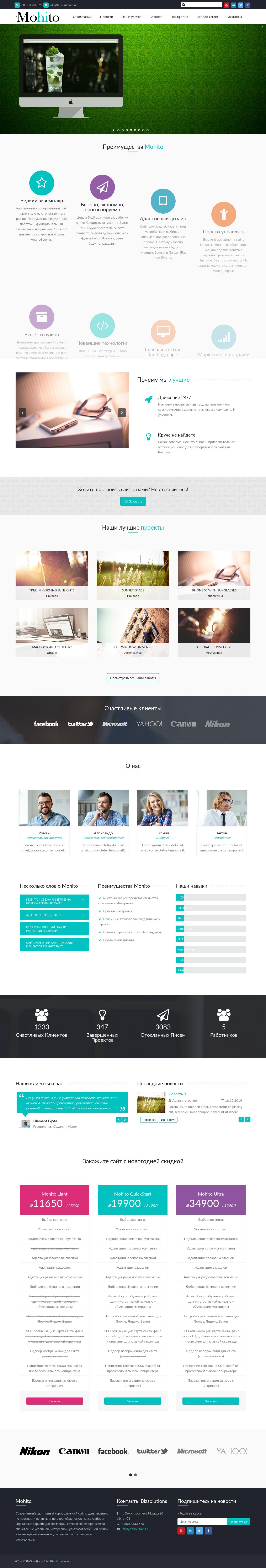 Приобрели макет Mohito, понравился современный дизайн и возможности. Потребовалась доработка и адаптация под свой бизнес. Спасибо команде "Business Solutions" за четкую быструю и качественную работу! Необходимые доработки тщательно проговаривались, анализировались и решались в течении нескольких дней. Все делалось за приемлемые деньги. На мой взгляд получился неплохой проект! Еще раз огромное спасибо!
