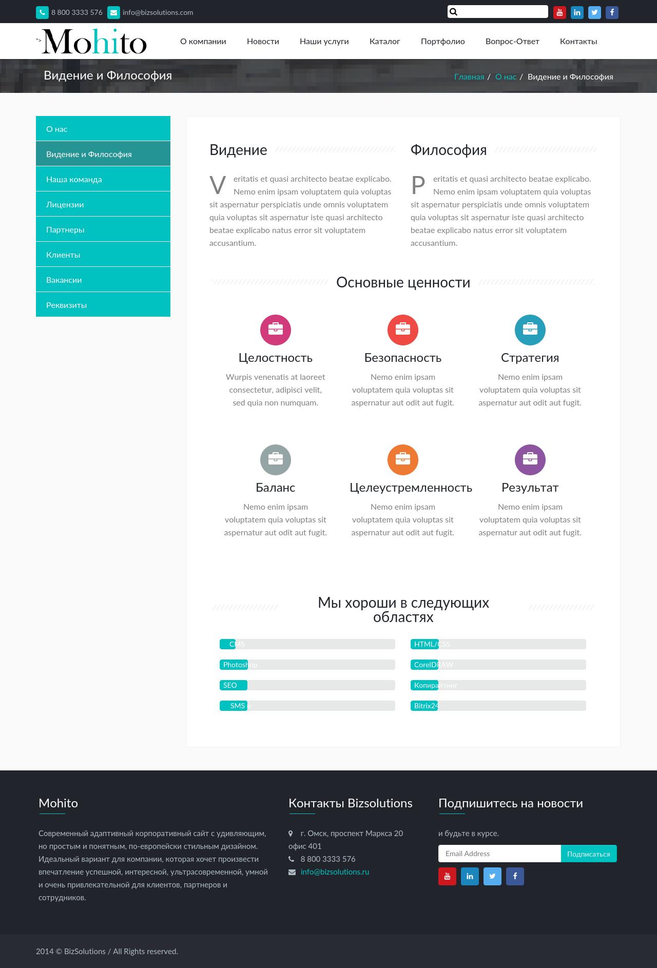 - Страница “Видение и философия”