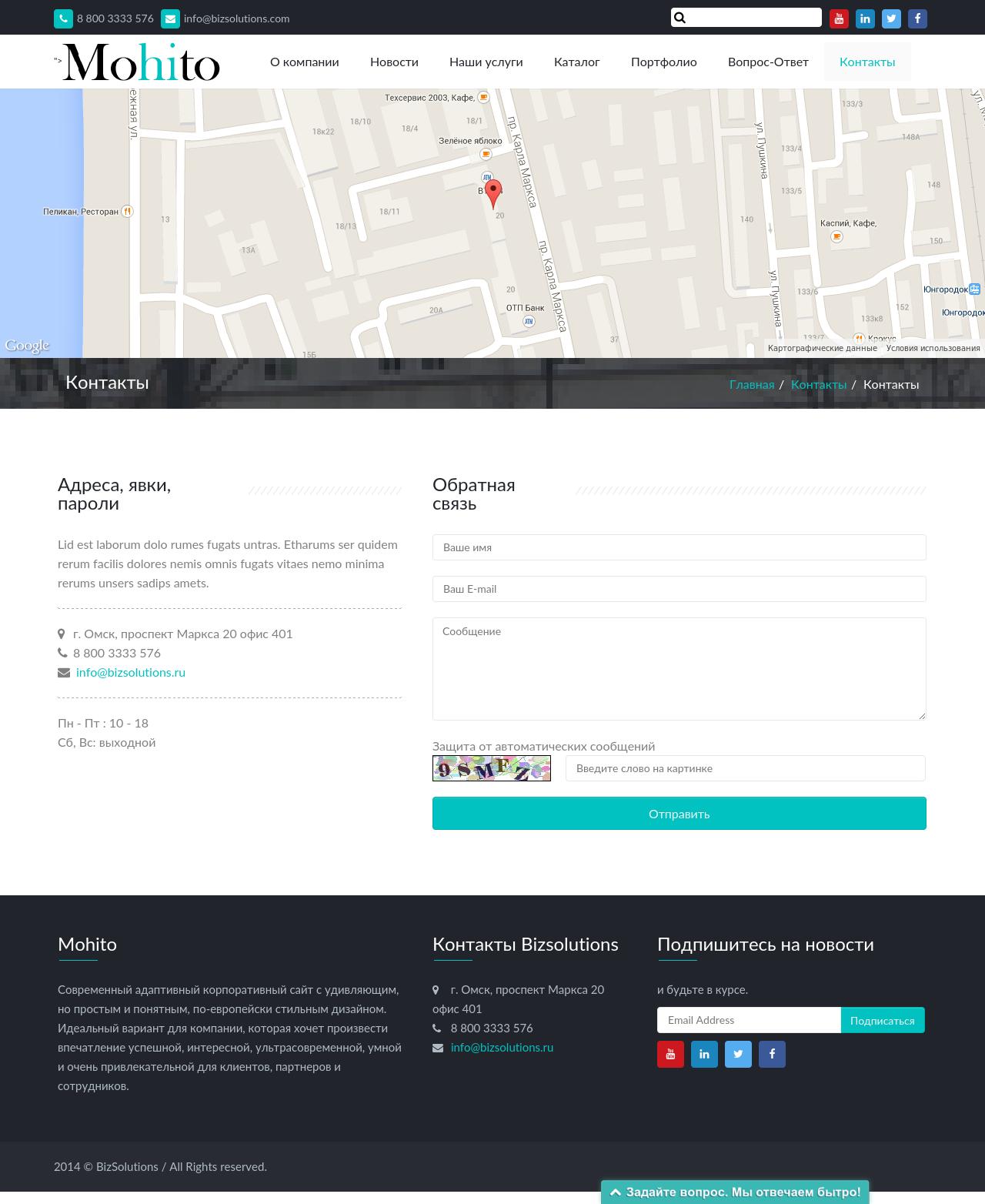 - Раздел “Контакты”