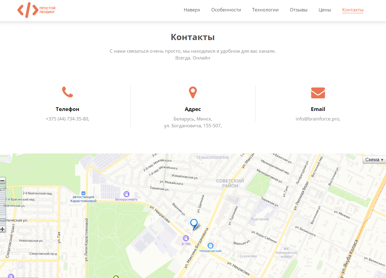 Универсальный лендинг от BrainForce позволяет быстро настроить под себя сайт и собирать с него заявки.Решение адаптивно, работает быстро, поддерживает композит и многосайтовость.