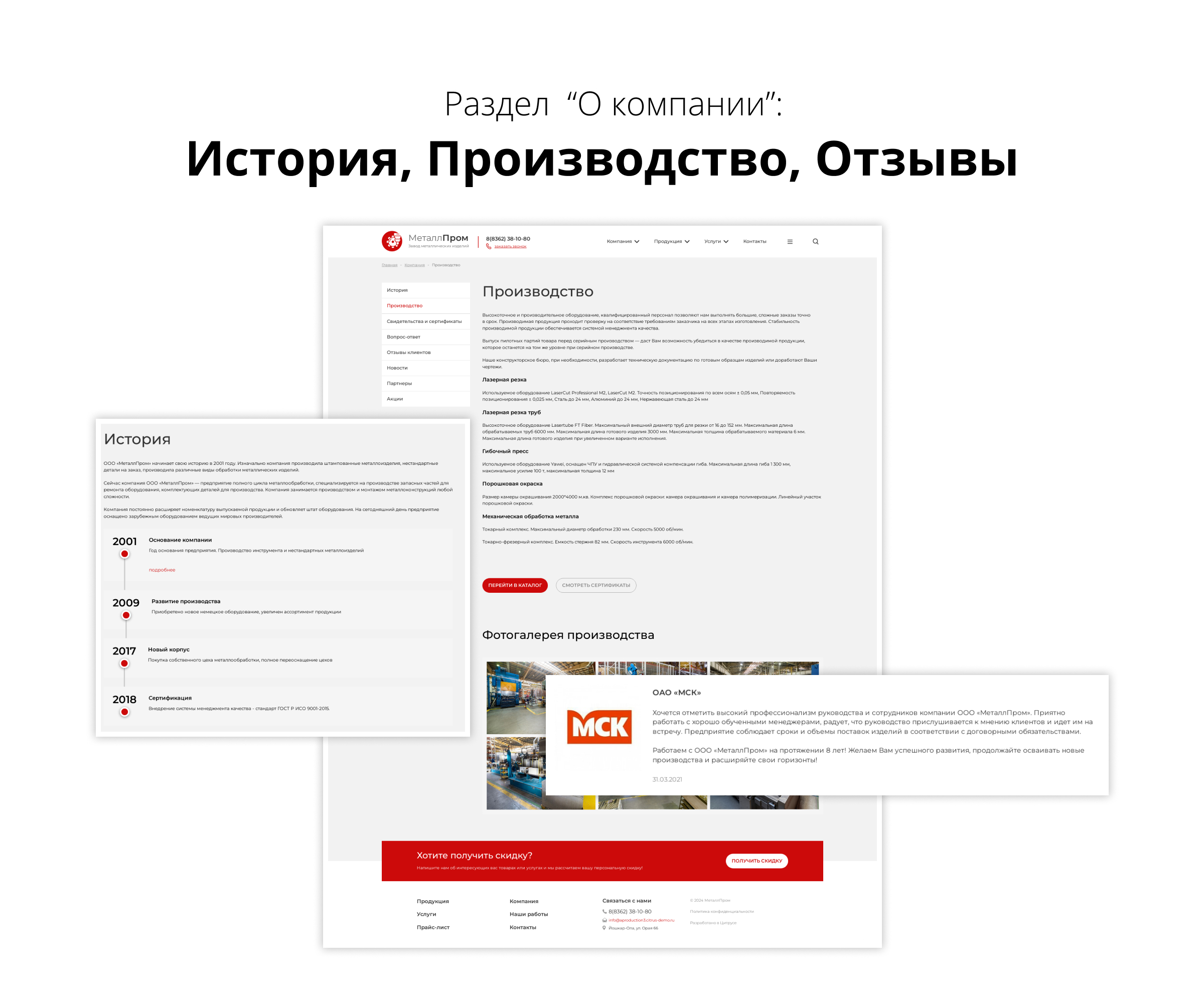 Адаптивный сайт производственной фирмы 3.0 - готовое решение для производственных компаний с акцентом на товары, услуги и специальные предложения.