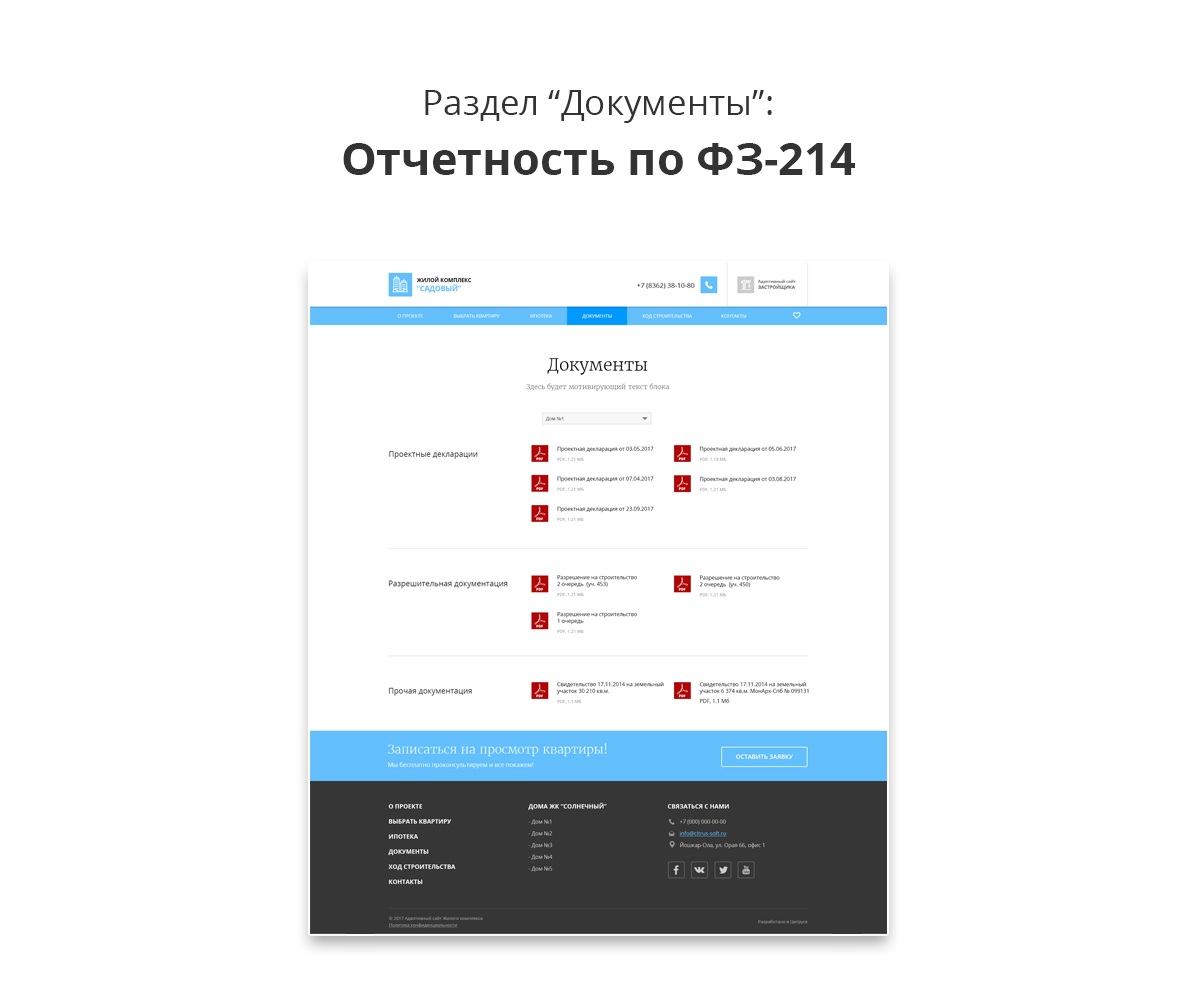 «Адаптивный сайт застройщика» подойдет как начинающим, так и крупным строительным компаниям.