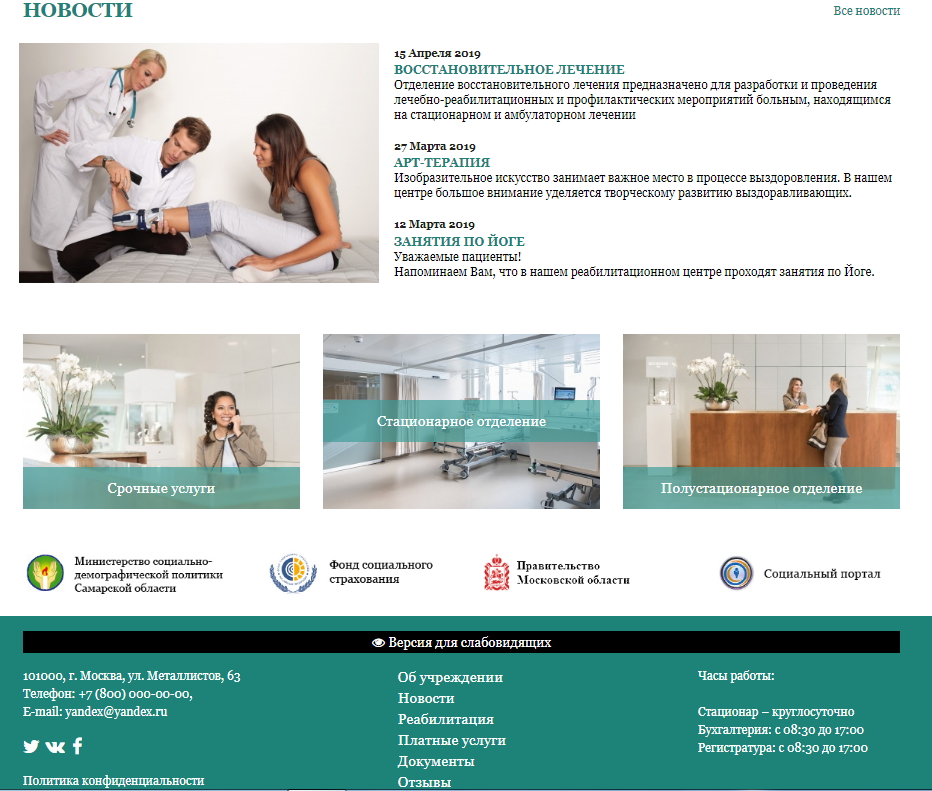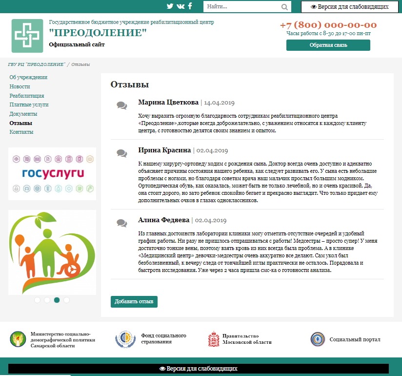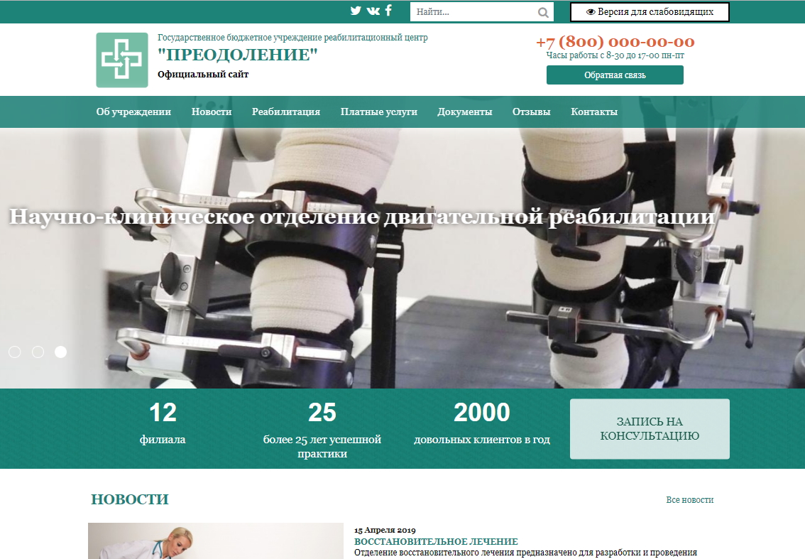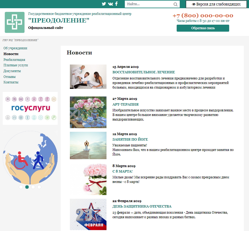 «КоЛайн: Сайт государственного бюджетного учреждения (реабилитационный центр)» – адаптивное готовое решение для быстрого запуска официального сайта государственного бюджетного или муниципального учреждения, полностью соответствующее законодательству РФ.