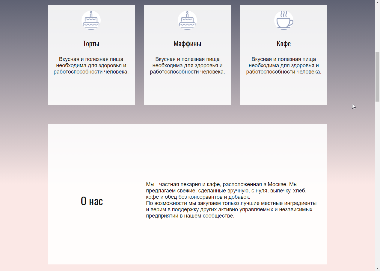 Одностраничный сайт для пекарни, кафе или ресторана