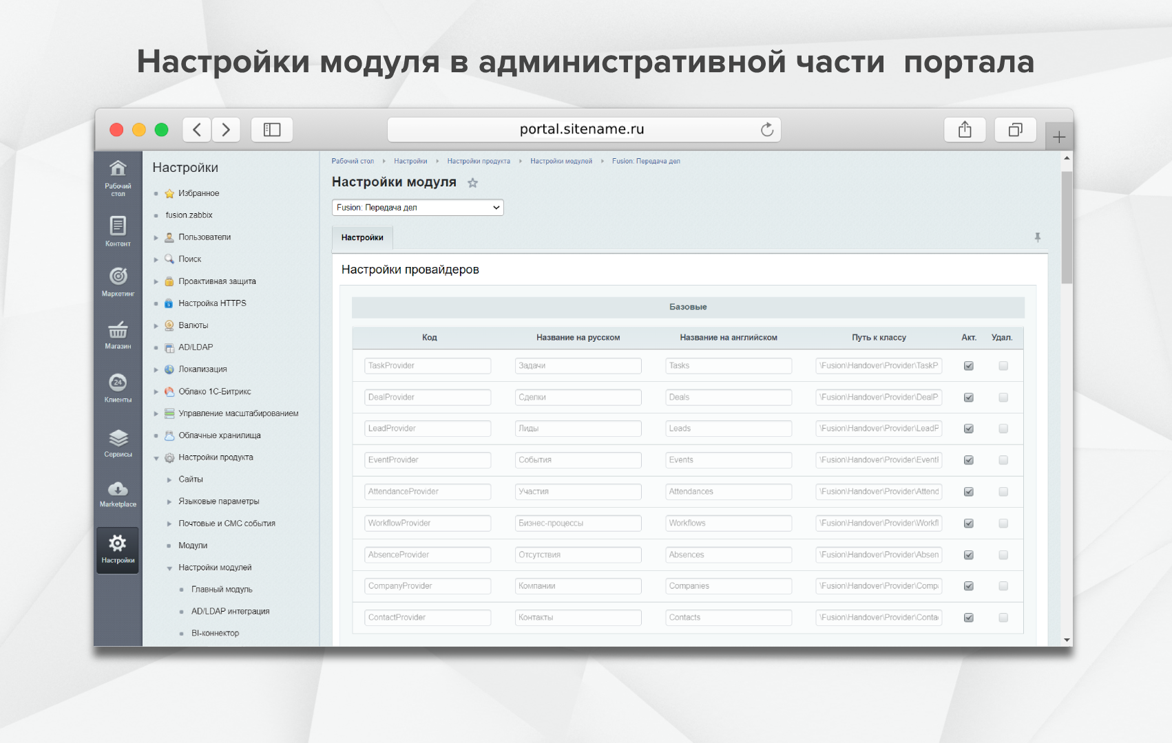 Для сокращения временных ресурсов, затрачиваемых на решения данной задачи, командой ИТ-интегратора Fusion был создан модуль «Fusion: Передача дел». Он автоматически собирает данные об отсутствии ответственных по следующим пунктам: задачи, сделки, лиды, компании, контакты, события (в календаре), бизнес-процессы.