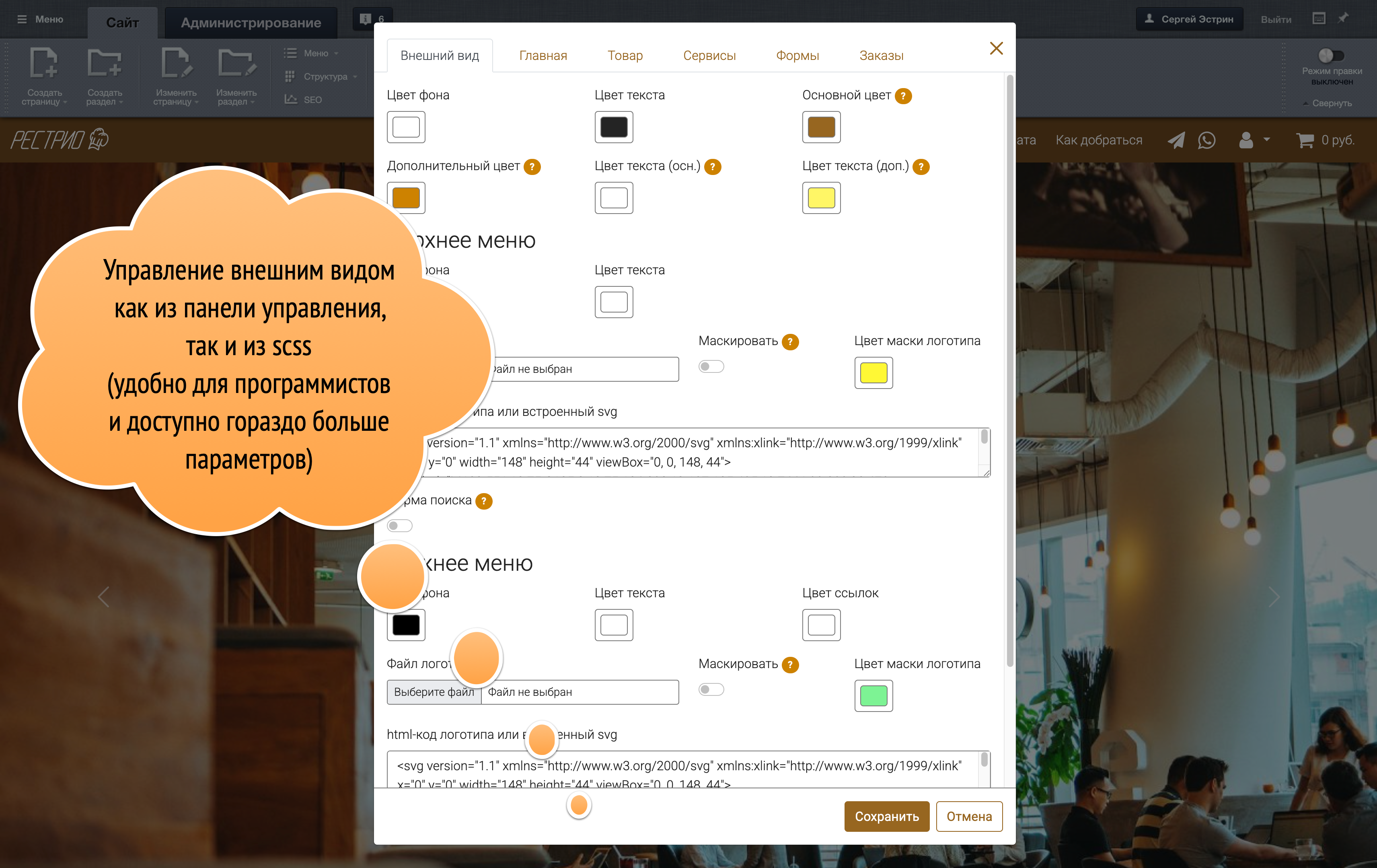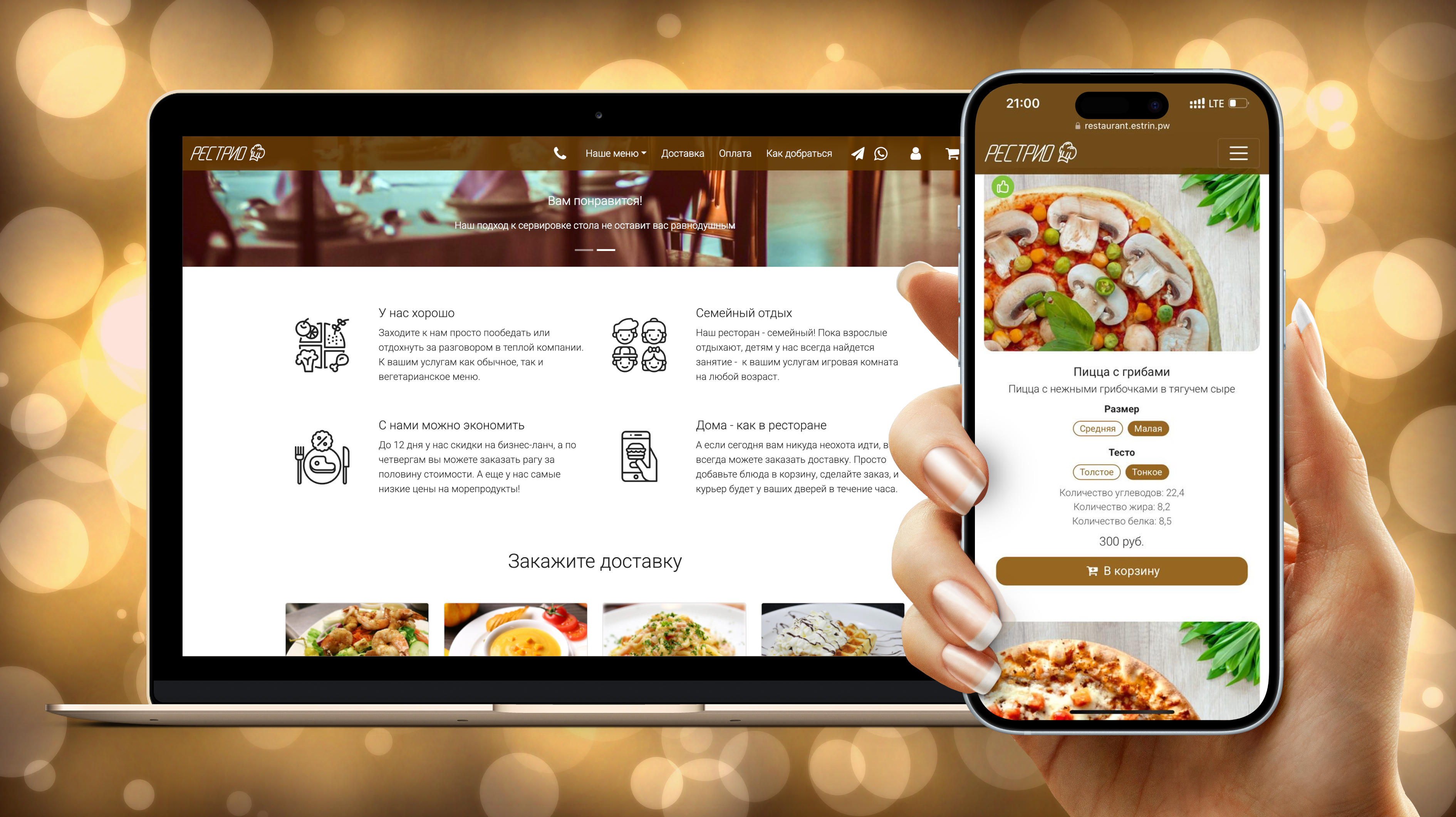 Готовый сайт ресторана с возможностью резервирования и онлайн заказов для редакций «1С-Битрикс Управление сайтом» включающих модуль «Интернет-магазин».
