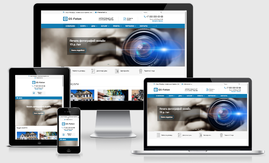 Адаптивный сайт. Мы создали отзывчивый адаптивный сайт, который отлично будет смотреться на всех устройствах: мониторы, ноутбуки, планшеты, смартфоны, и др. гаджеты