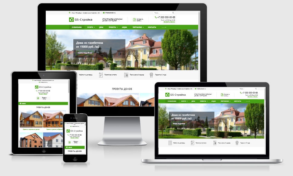 «GS: Строительство домов» – универсальный, адаптивный сайт для компаний оказывающих услуги в строительной сфере. Возможная интеграция: заливка фундаментов, устройство кровли, бурение скважин, ландшафтный дизайн, установка септиков, монтаж водяных теплых полов, строительство домов, строительство бань, строительство беседок, строительство гаражей, строительство барбекю (камины, печи), архитектурное бюро, малоэтажное строительство, строительство коттеджей, проектирование малоэтажных домов, проекты домов, строительные материалы.