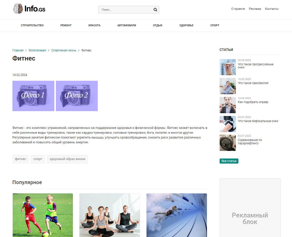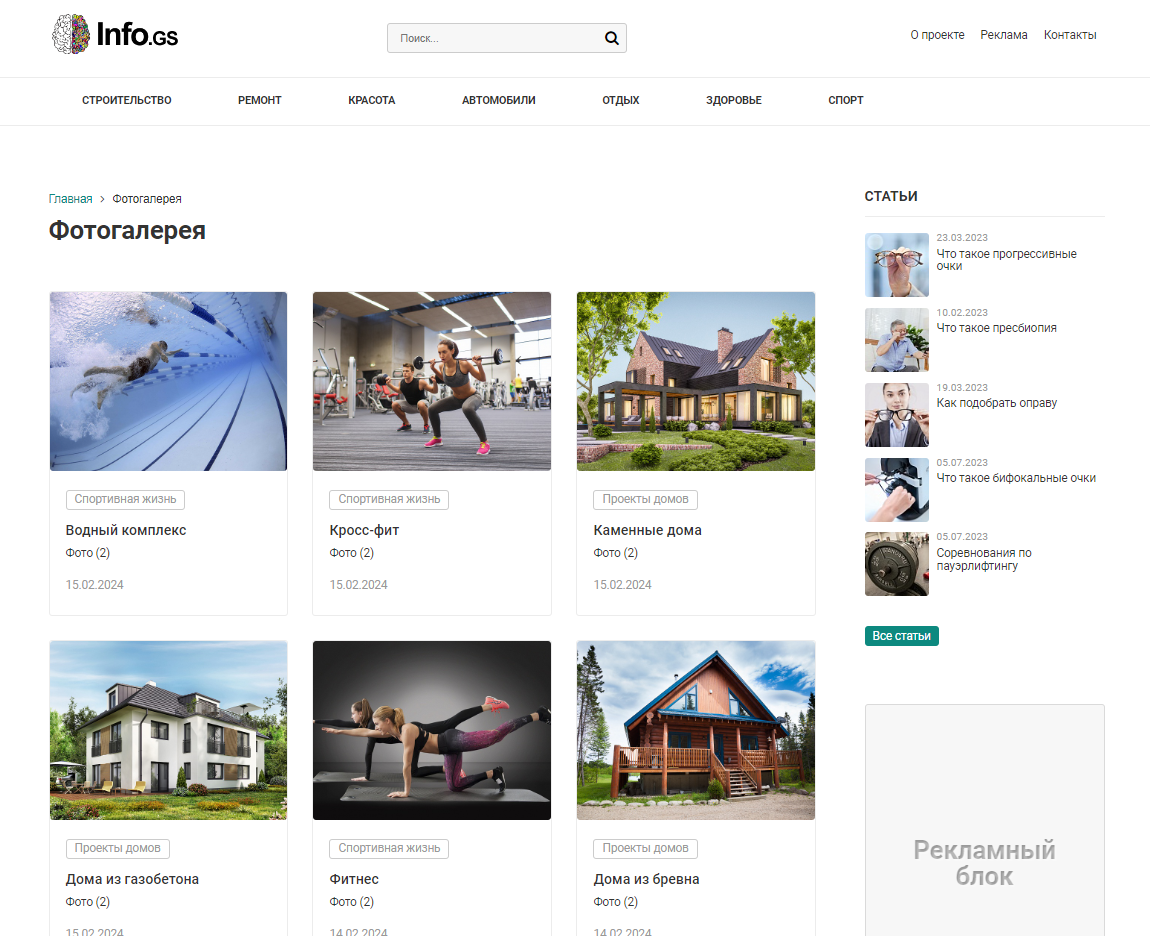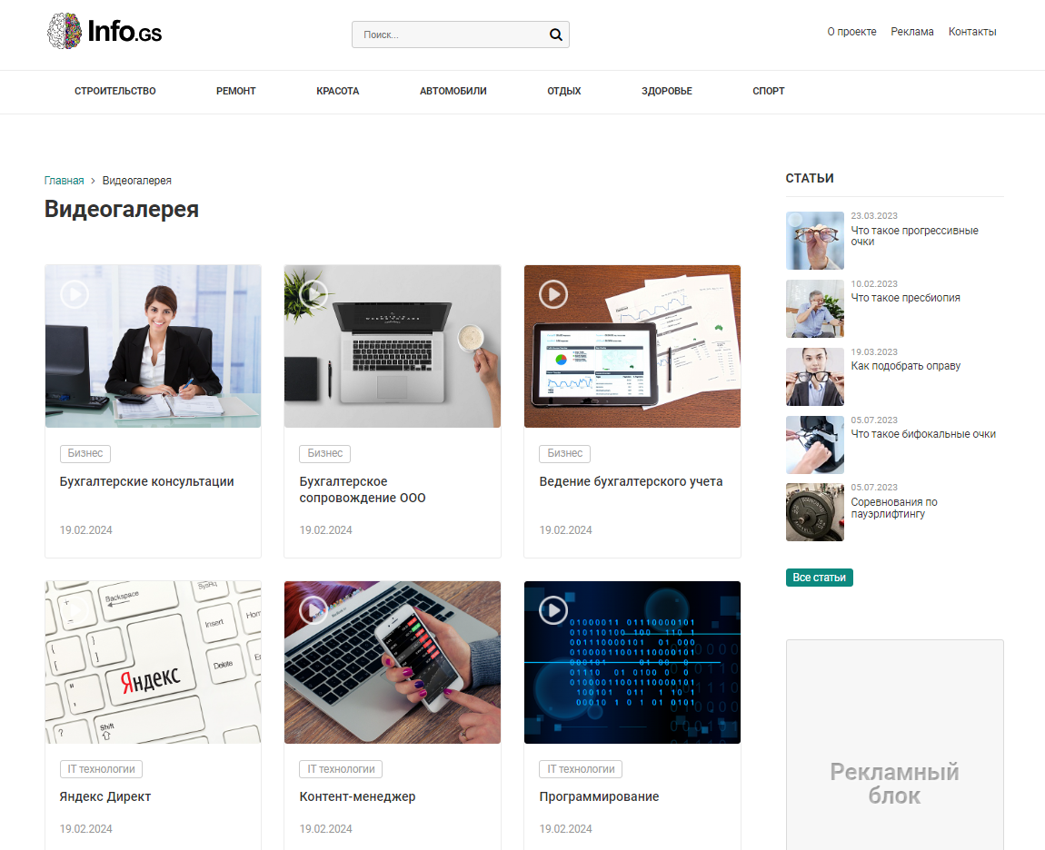 Возможная интеграция шаблона: блог, информационный портал, видеогалерея, фотогалерея