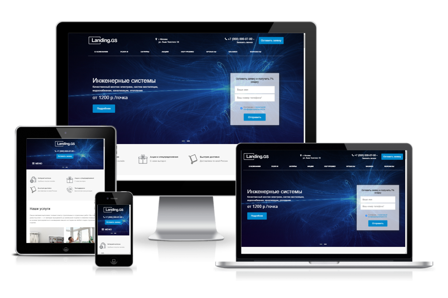 Адаптивный сайт. Мы создали отзывчивый адаптивный сайт, который отлично будет смотреться на всех устройствах: мониторы, ноутбуки, планшеты, смартфоны, и др. гаджеты