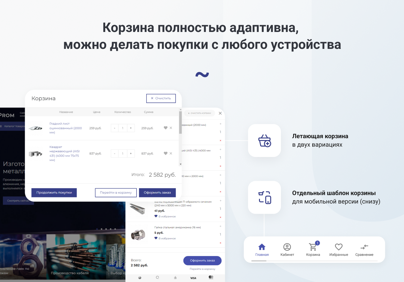 Переносили свой интернет-магазин арматуры с решения от другого разработчика на Prom, остались довольны. Понравилось, что тут сразу предусмотрен b2b-кабинет и разные цены для оптовиков и розницы, не нужны дополнительные доработки или модули. Легко можно самим настроить дизайн под корпоративный стиль компании через встроенный редактор. Также сами подключили интеграцию с 1с, товары подтянулись без ручной выгрузки. Поддержка Интек отвечает относительно быстро, помогли с настройкой умного фильтра под нашу номенклатуру. Смело могу рекомендовать само решение и разработчика!