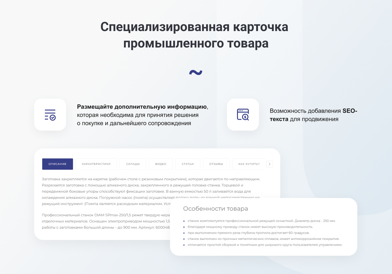 Искали решение для промышленного интернет-магазина по продаже насосов и гидравлики. Данный шаблон подошёл идеально: удобный табличный каталог помогает быстро сравнивать характеристики, а карточки товара максимально информативные и адаптированы под сложную техническую продукцию. Очень удобно, что можно настраивать технические параметры и загружать документацию прямо в карточку. Управлять большим каталогом оказалось проще, чем ожидали. Отличное решение для B2B сегмента, которое помогает выглядеть современно и профессионально.