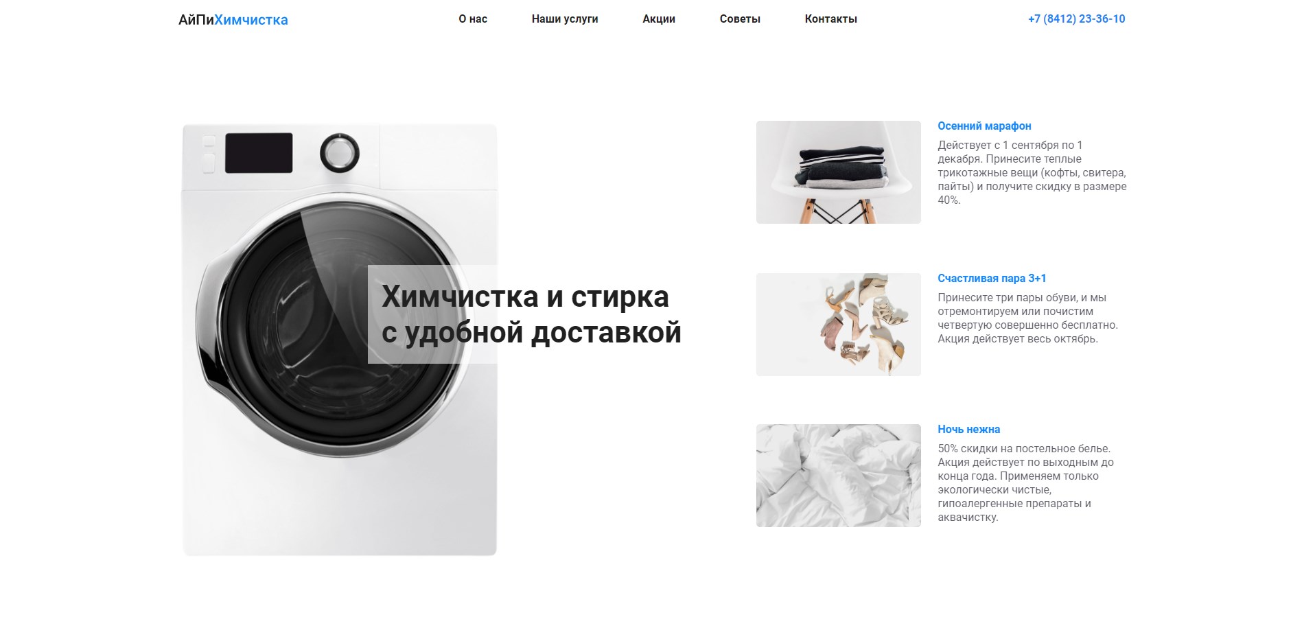 Хотите достойно презентовать свой бизнес и продвигать услуги химчистки с помощью сайта? Воспользуйтесь готовым профессиональным решением АйПи Химчистка.