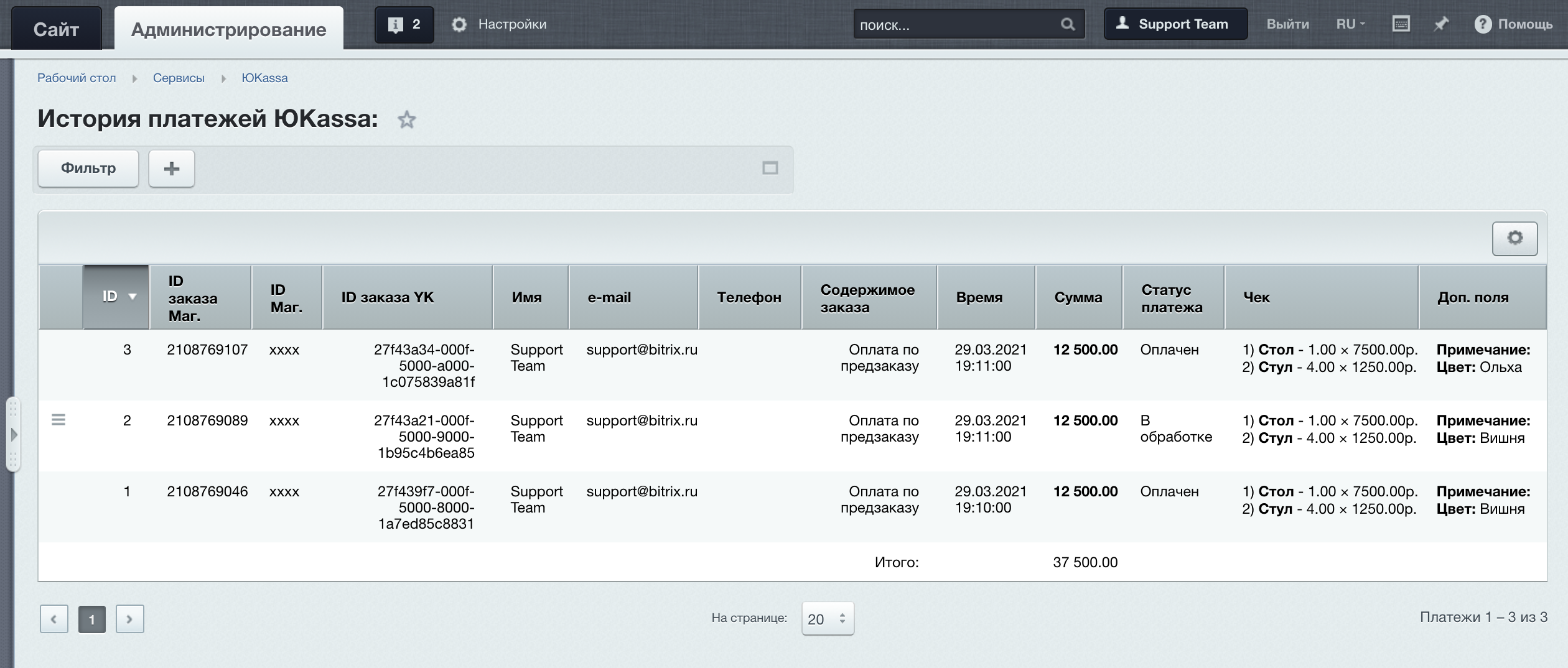 - Автоматические оповещения по email о новом заказе и о его оплате.