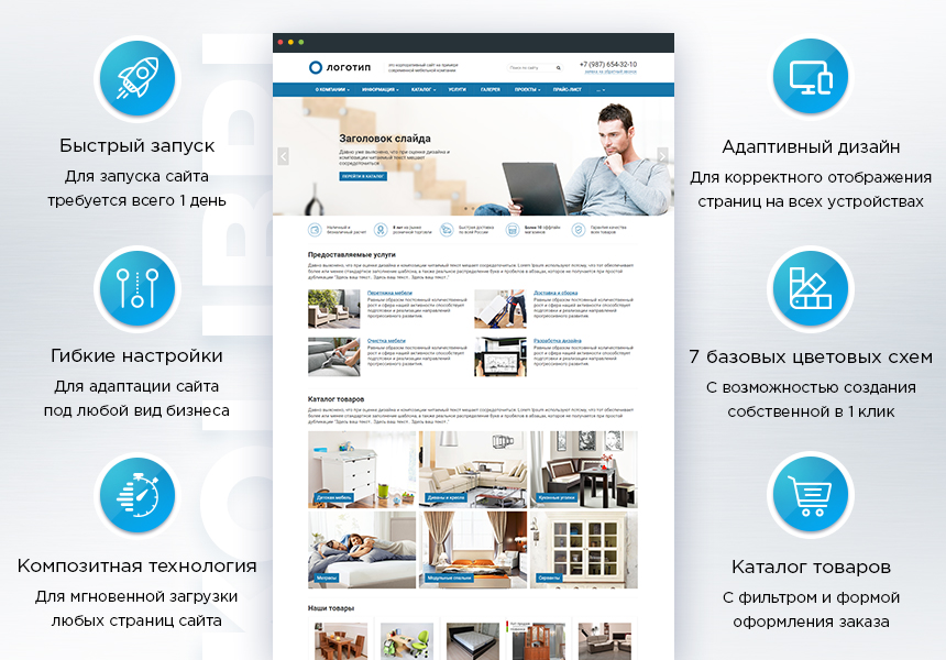 - Поддержка технологии «Композитный сайт» для ускорения сайта;