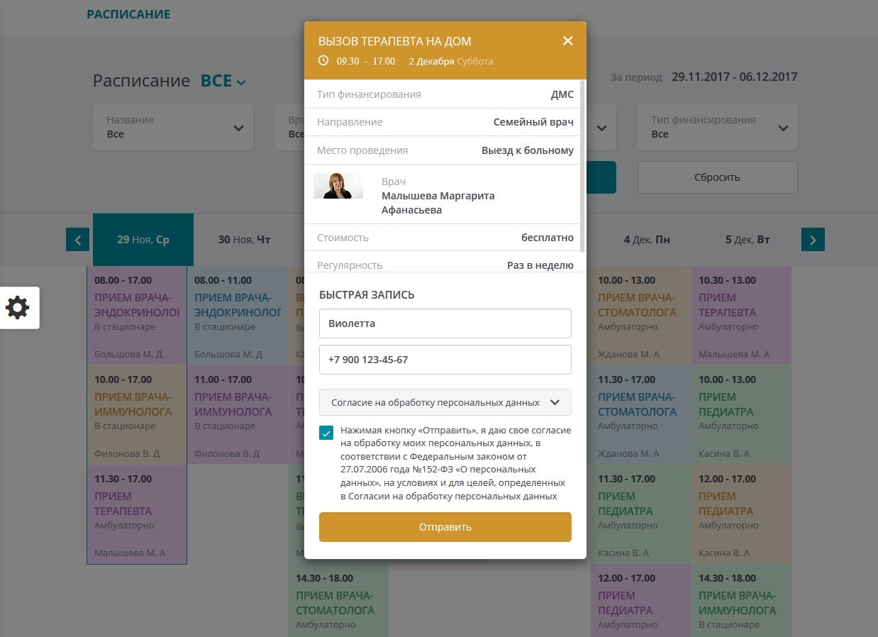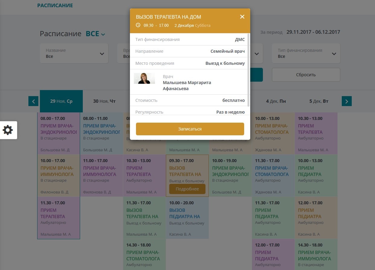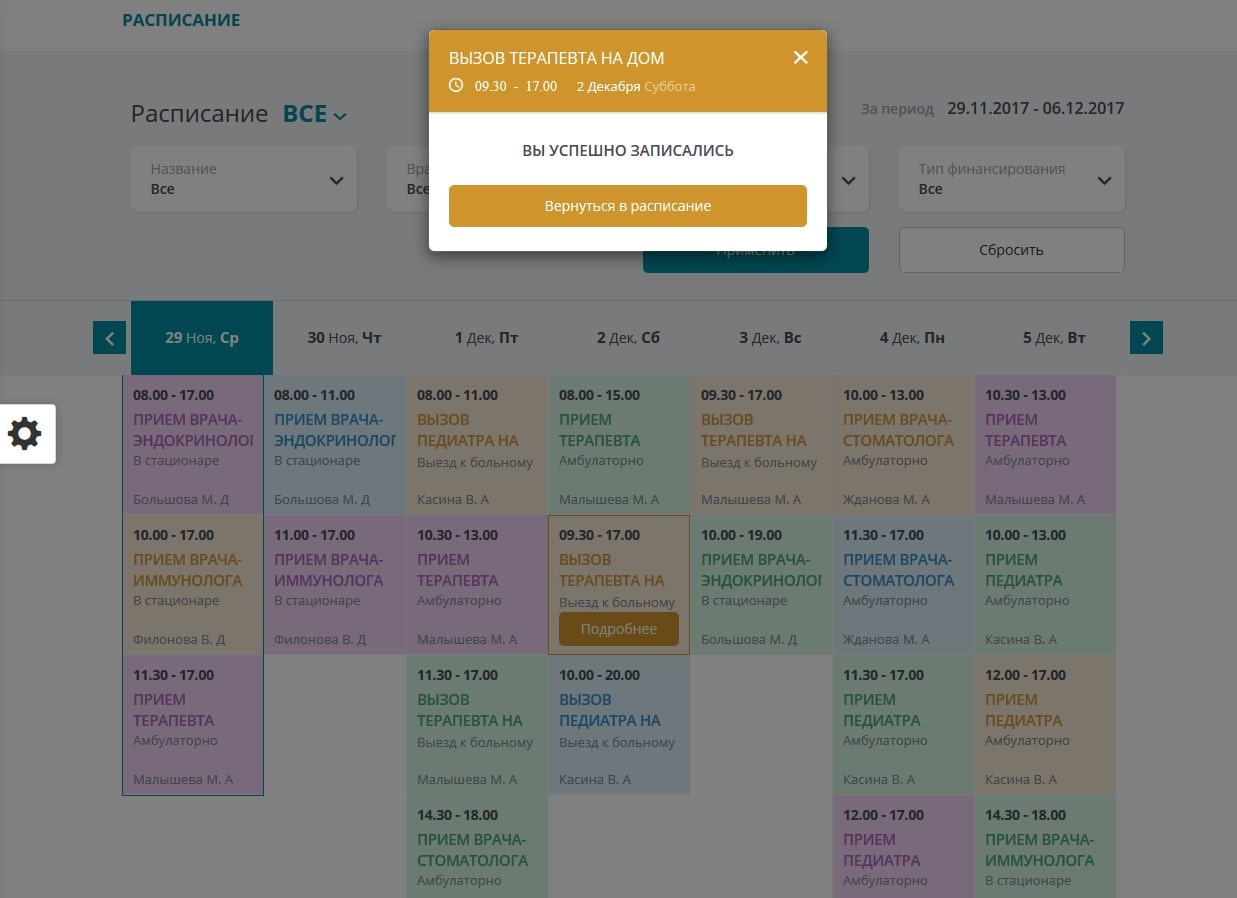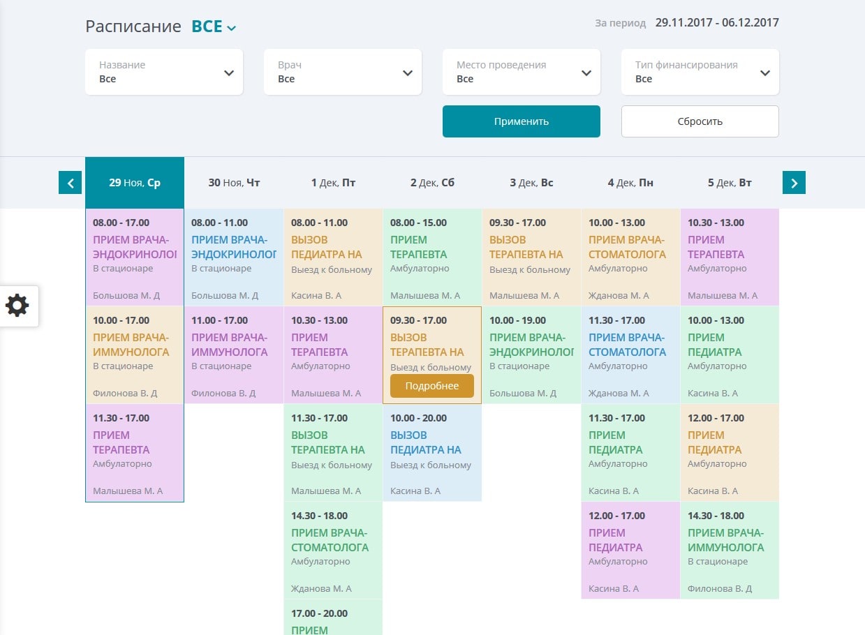- Модуль расписания позволяющий создать полноценное расписание приема врачей и записи на прием.