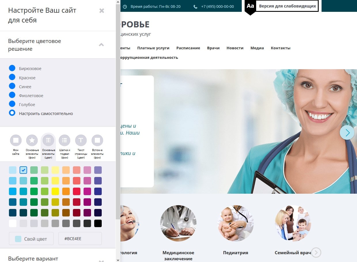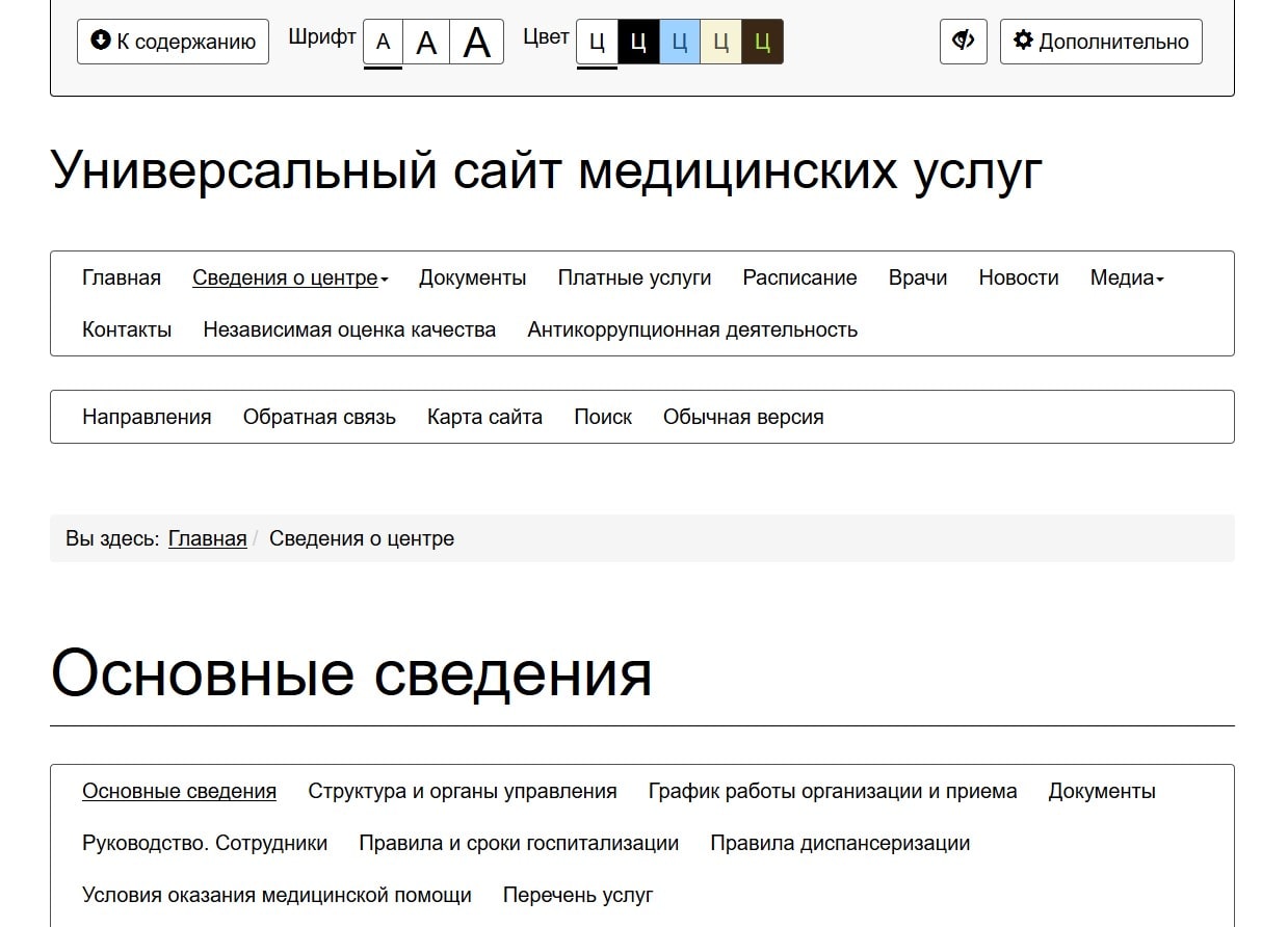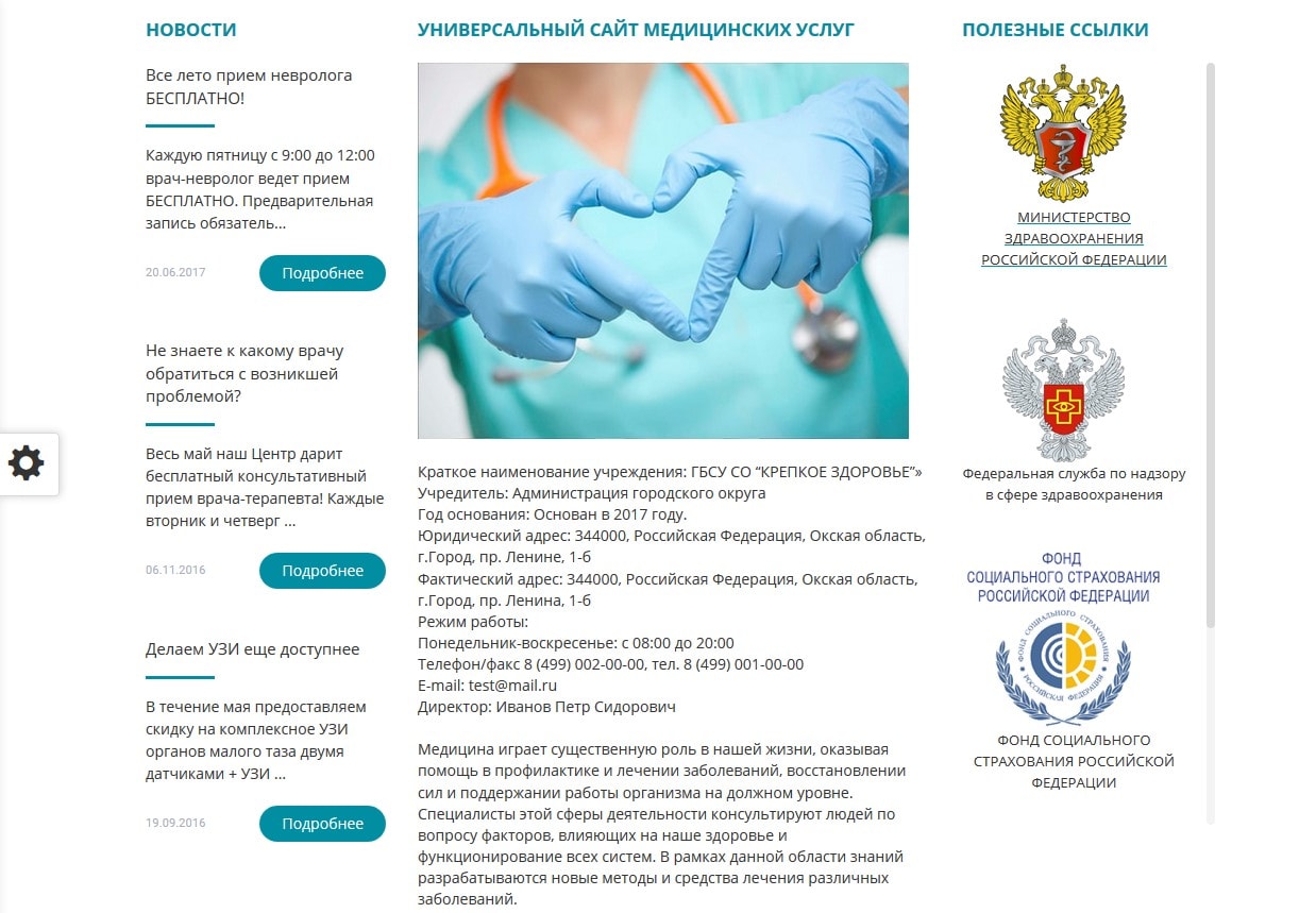 Универсальность Благодаря разработанному функционалу сайта решение легко адаптировать под любую медицинскую организацию и любой контент | 2 варианта дизайна Адаптивная верстка сайта в 2х вариантах позволяет комфортно пользоваться сайтом, как на смартфоне и планшете, так и на ноутбуке и ПК | Готовая структура Готовая структура с демо-материалами для быстрого запуска позволит запустить сайт за несколько часов. |