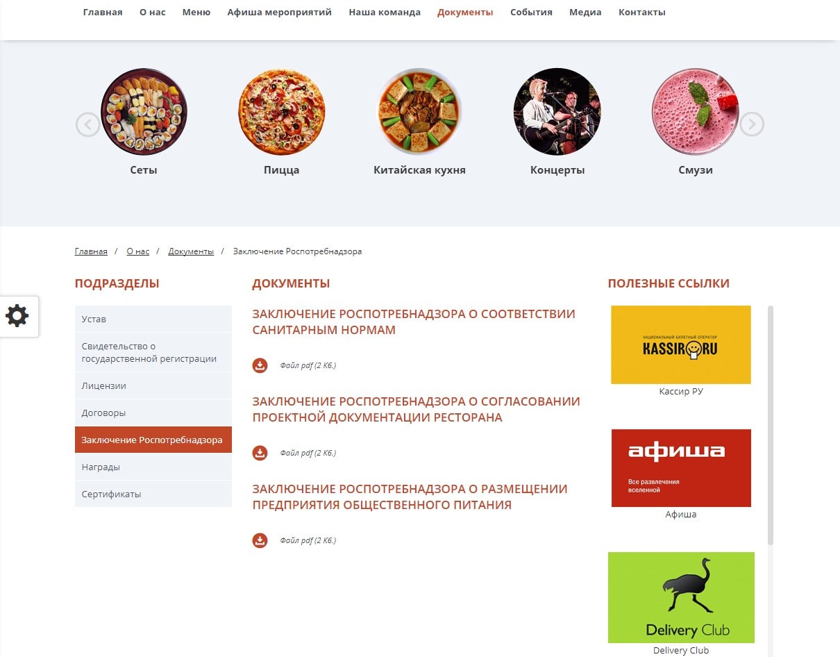 - Организация общественного питания