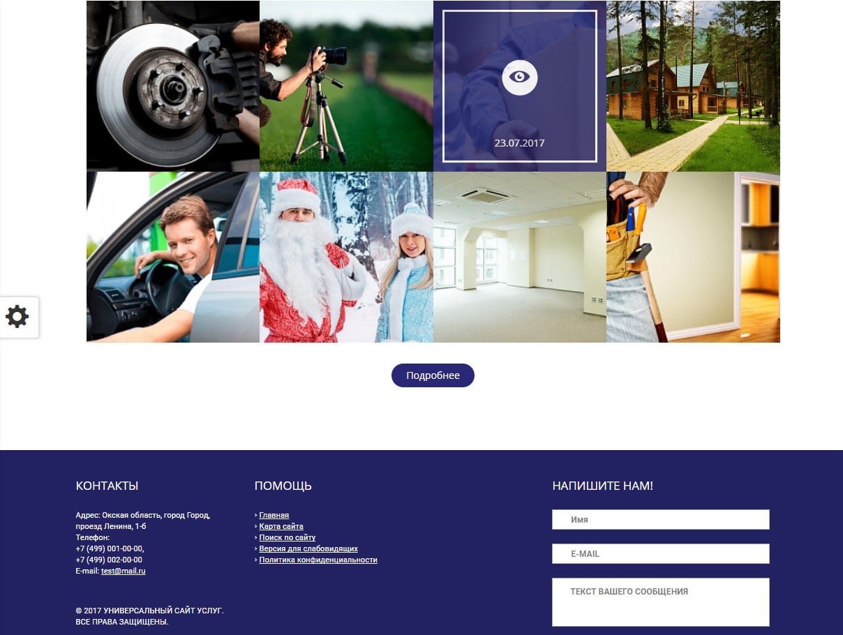 Адаптивная верстка для использования сайта на любых устройствах, множество персональных настроек. В поставку включено более 50 иконок различных направлений деятельности.
