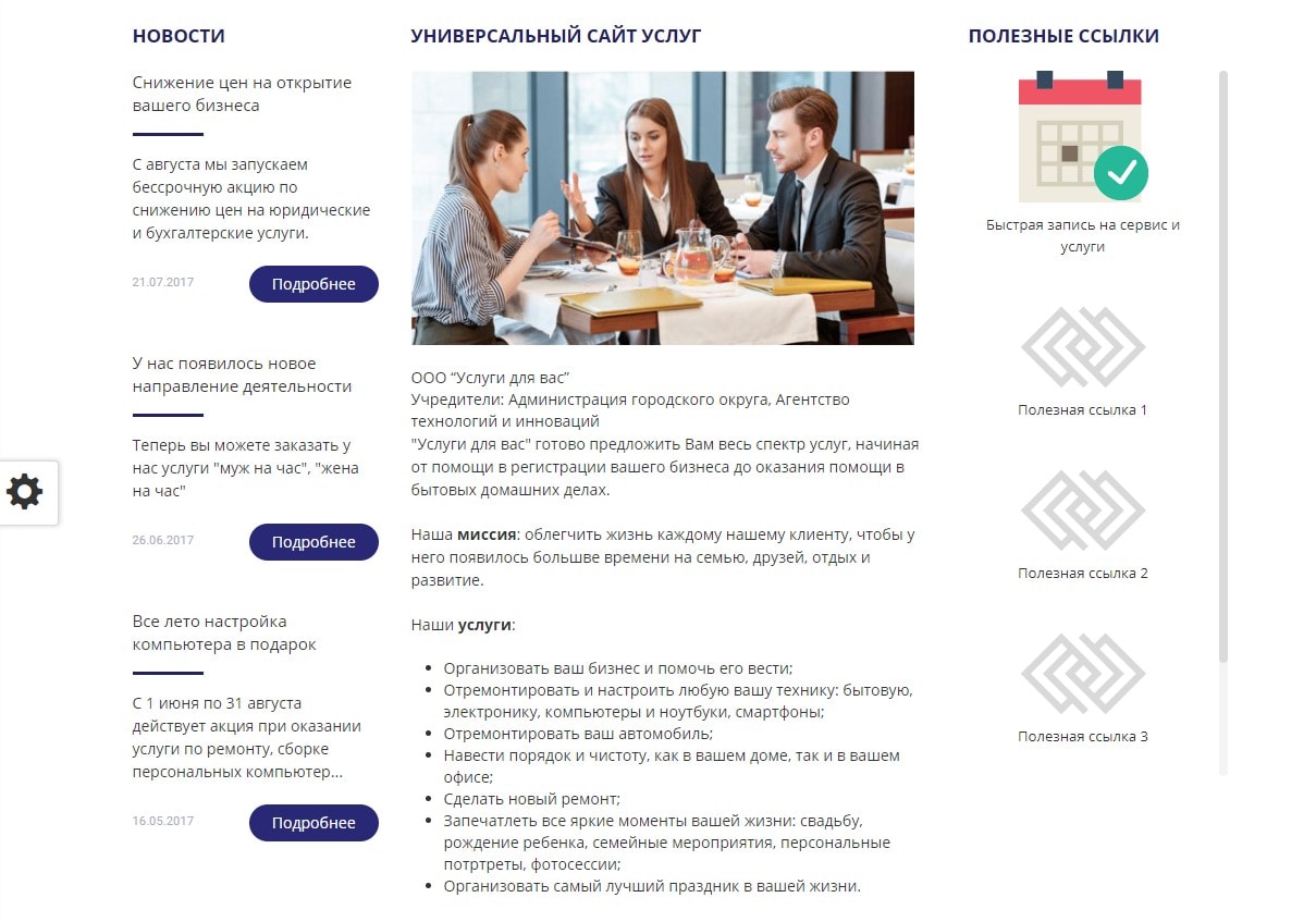 Решение идеально подходит для представления информации об оказании самых разных услуг: