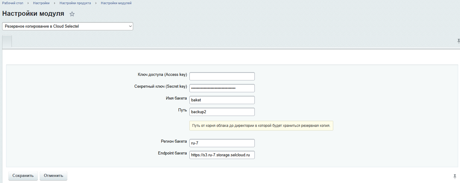 Модуль резервного копирования в Облако Selectel для 1С-Битрикс