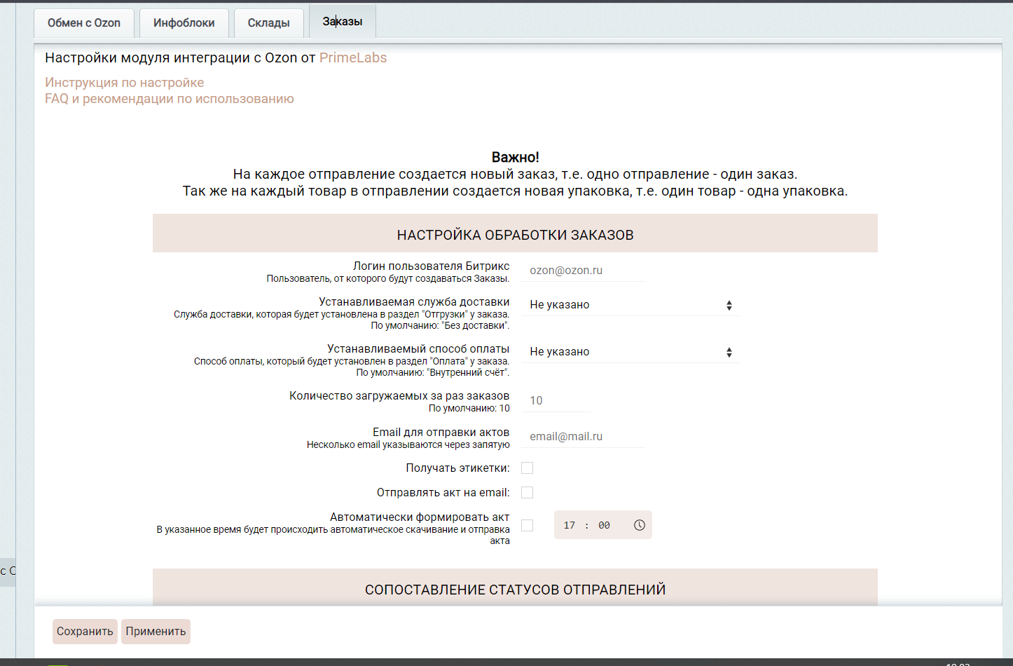 Инструкция по настройке модуля интеграции с Ozon