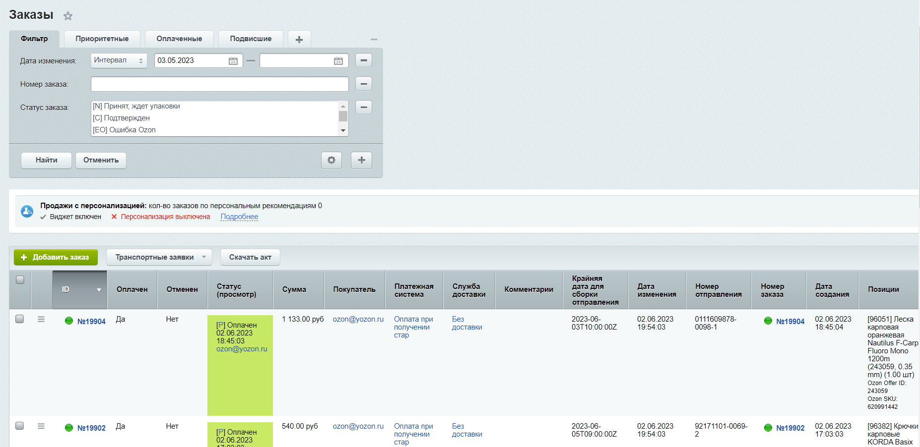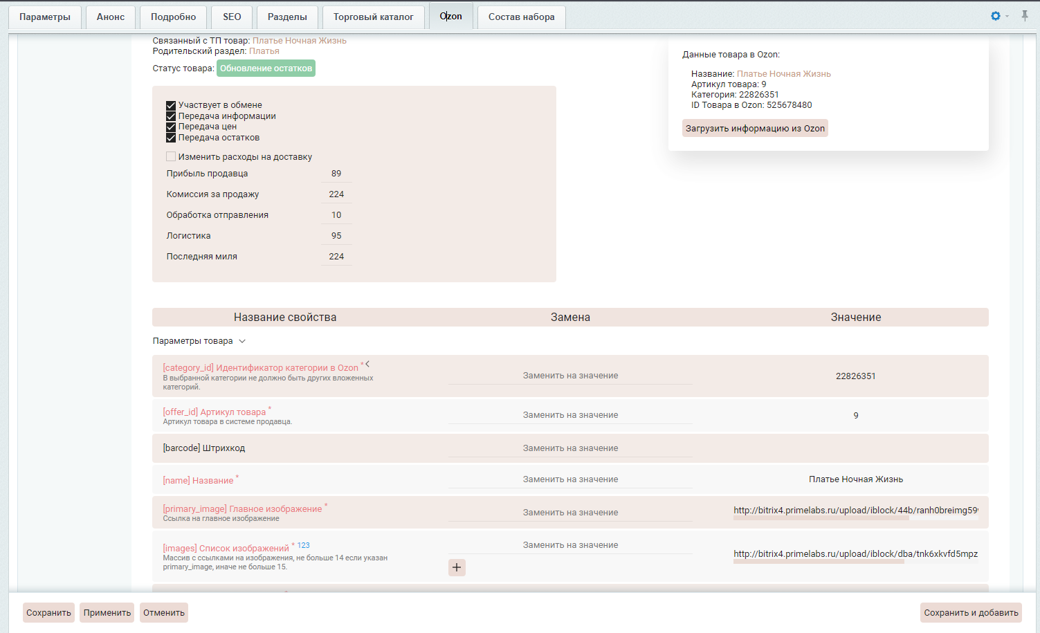 Подробное описание функционала модуля интеграции с Ozon