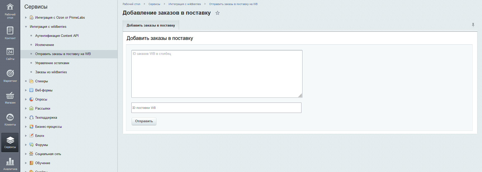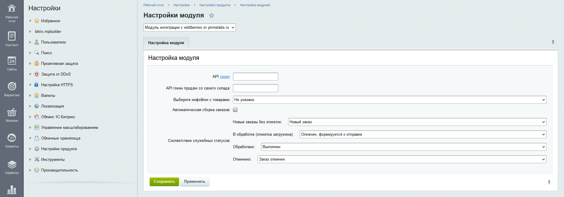 Модуль интеграции с Wildberries от PrimeLabs предназначен для полной интеграции с маркетплейсом Wildberries и позволяет осуществлять следующий функционал: