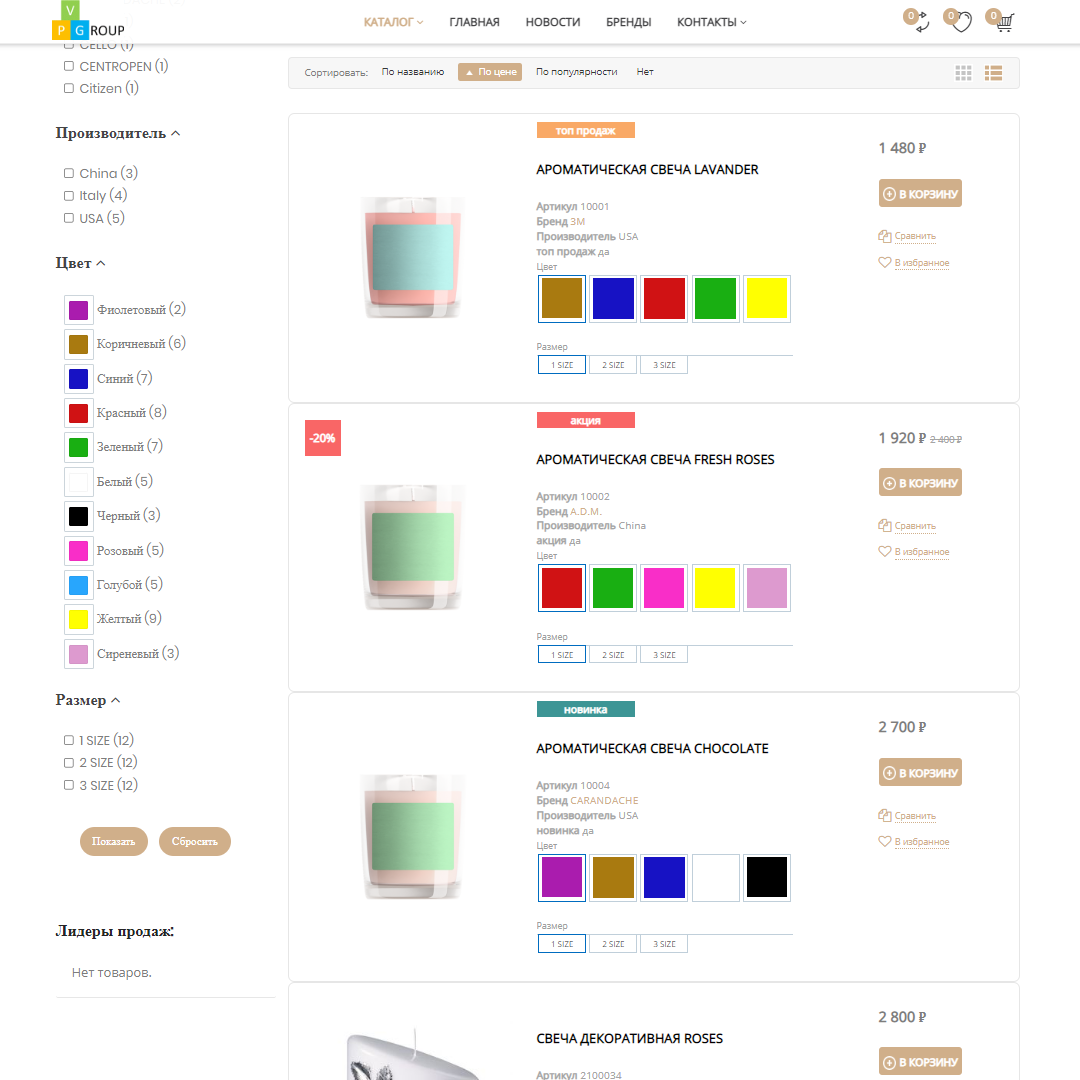 В интернет-магазинах от Pvgroup каталог товаров