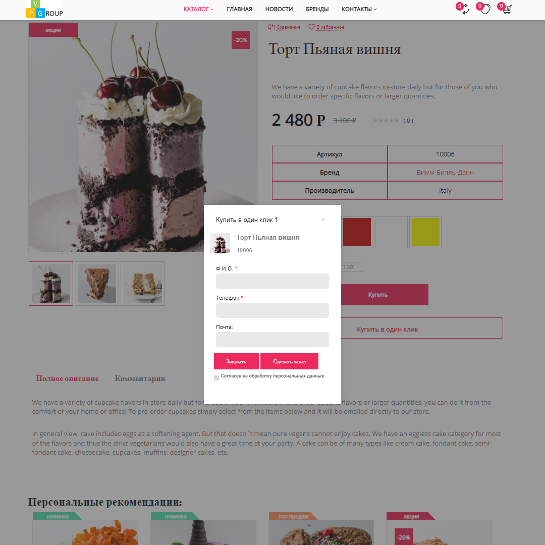 - Торговый каталог с Корзиной и кнопкой "Купить в один клик".