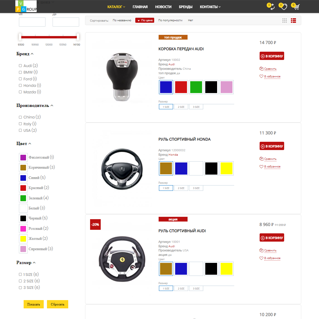 В интернет-магазинах от Pvgroup каталог товаров