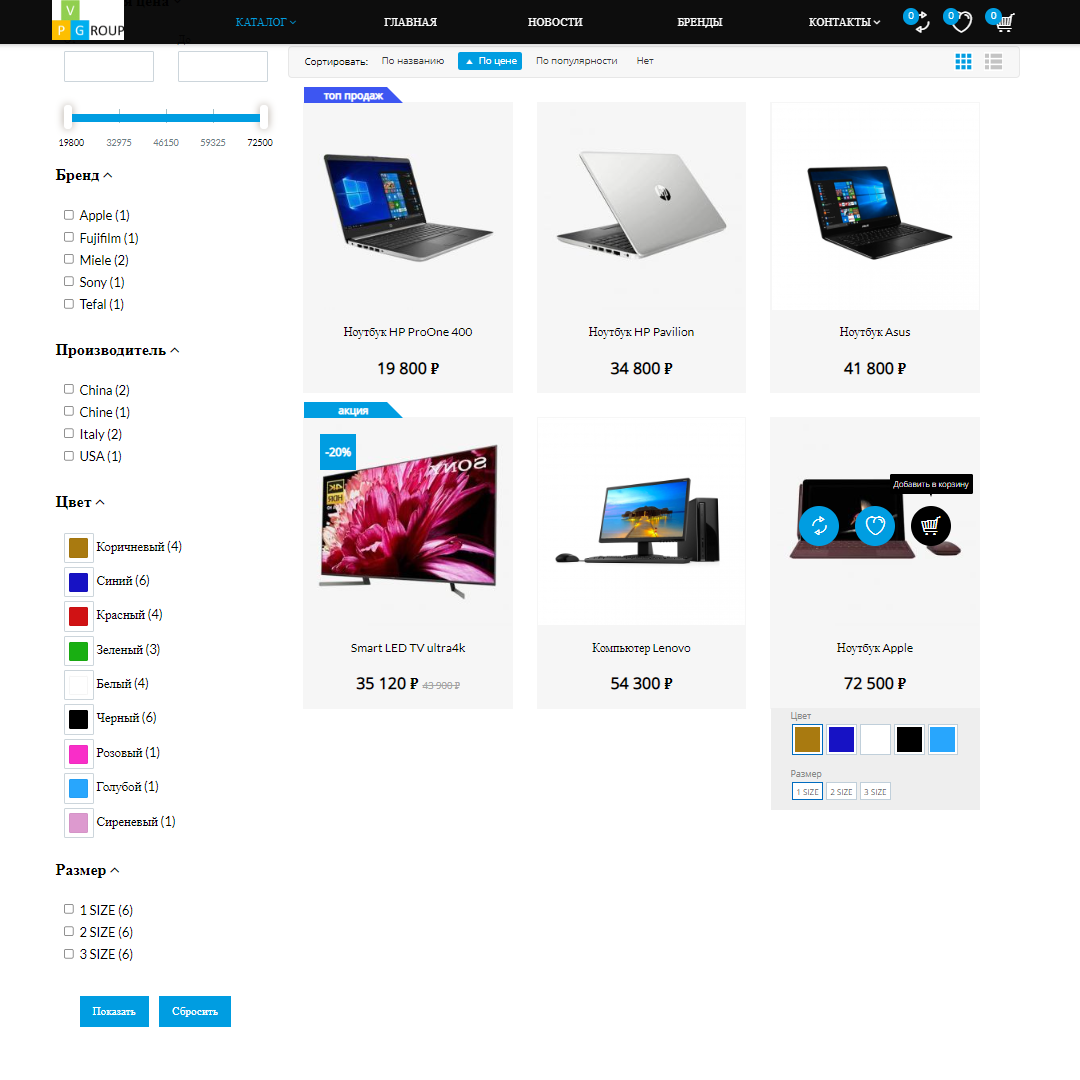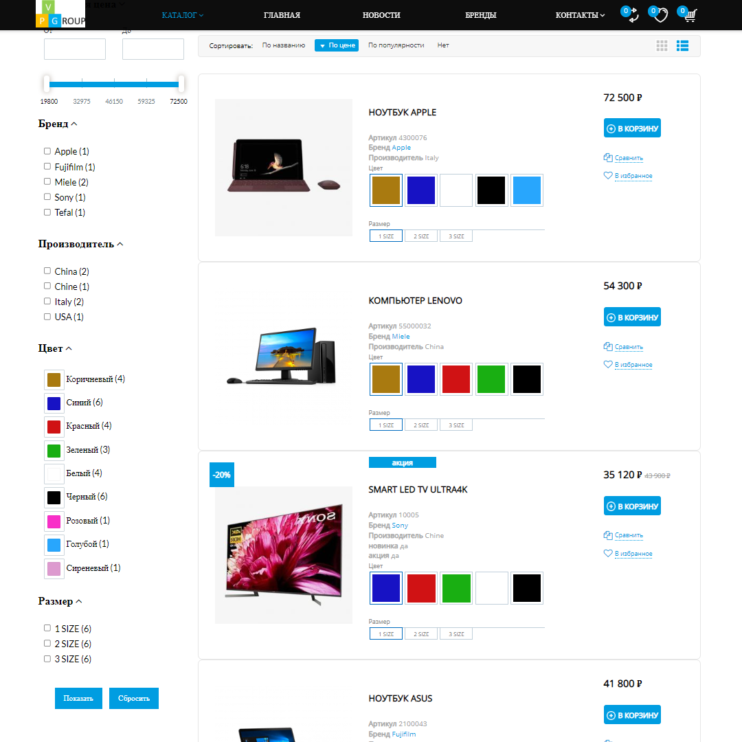 В интернет-магазинах от Pvgroup каталог товаров