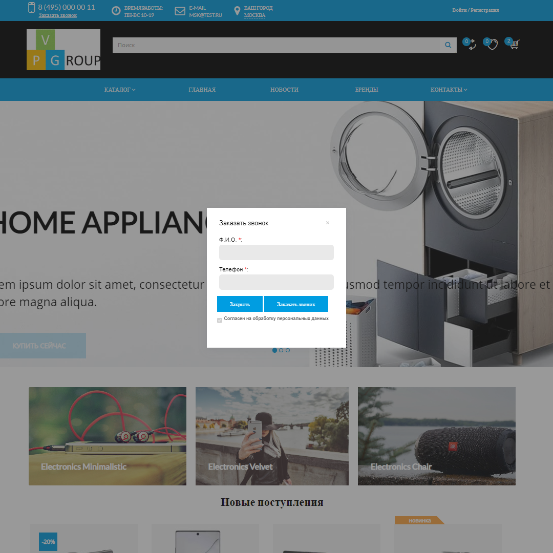 - Функцию "Заказать звонок".