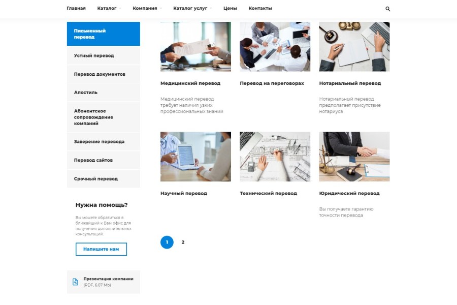 - Каталог услуг