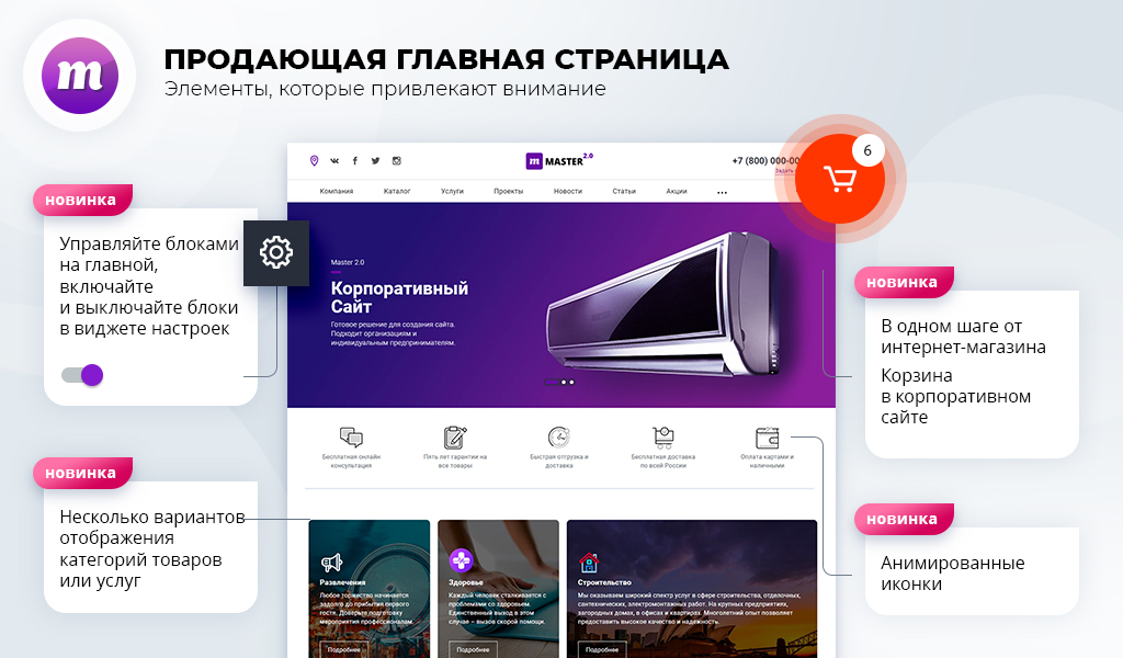 Из всех вариантов Мастер 2 в 1 понравился больше других корпсайтов. В решении есть корзина и можно сделать интернет-магазин. Тех. поддержка всегда помогает, отвечает быстро. Рекомендую.