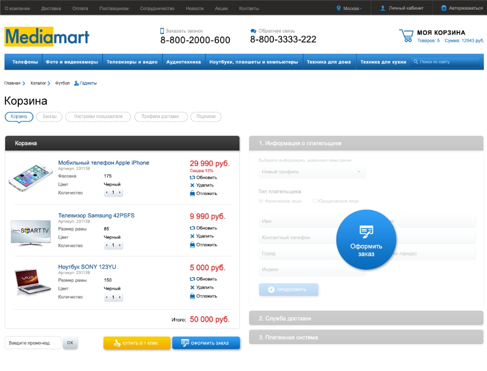 - MediaMart: интернет магазин электроники, бытовой техники.