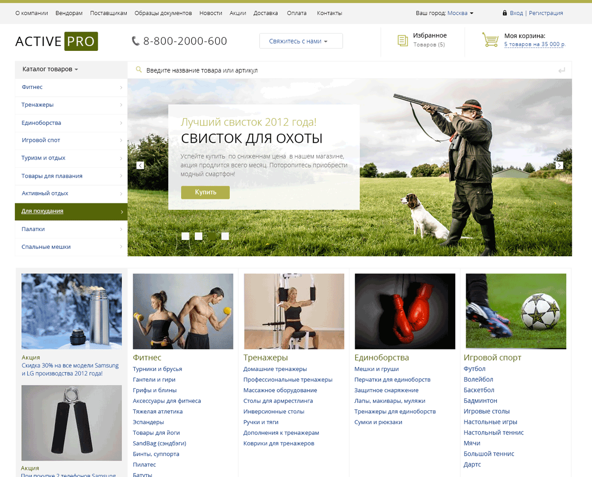 7. Активный отдых. Спортивные товары. Охота, рыбалка. Спортивное оружие (ActivePRO). Профессиональный интернет магазин (рус. + англ.)