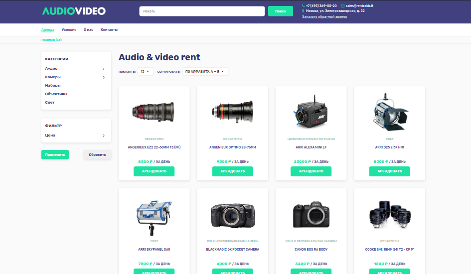 Управление арендой аудио, видео и звуковым оборудованием для облачной платформы по ведению арендного бизнеса RentRabbit.