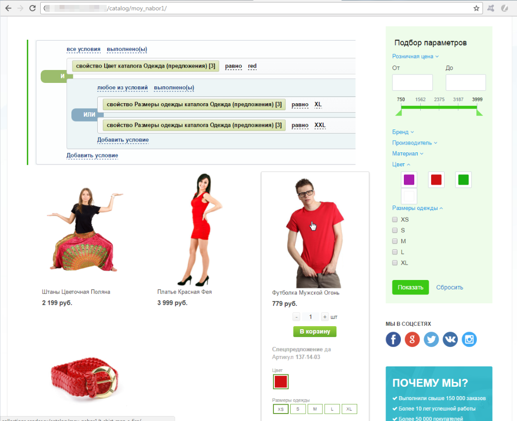 Решение воплощает мечты многих владельцев сайта, а также SEO-специалистов по созданию категорий с необходимым товарным набором, удовлетворяющим указанным условиям, параметрам, свойствам.