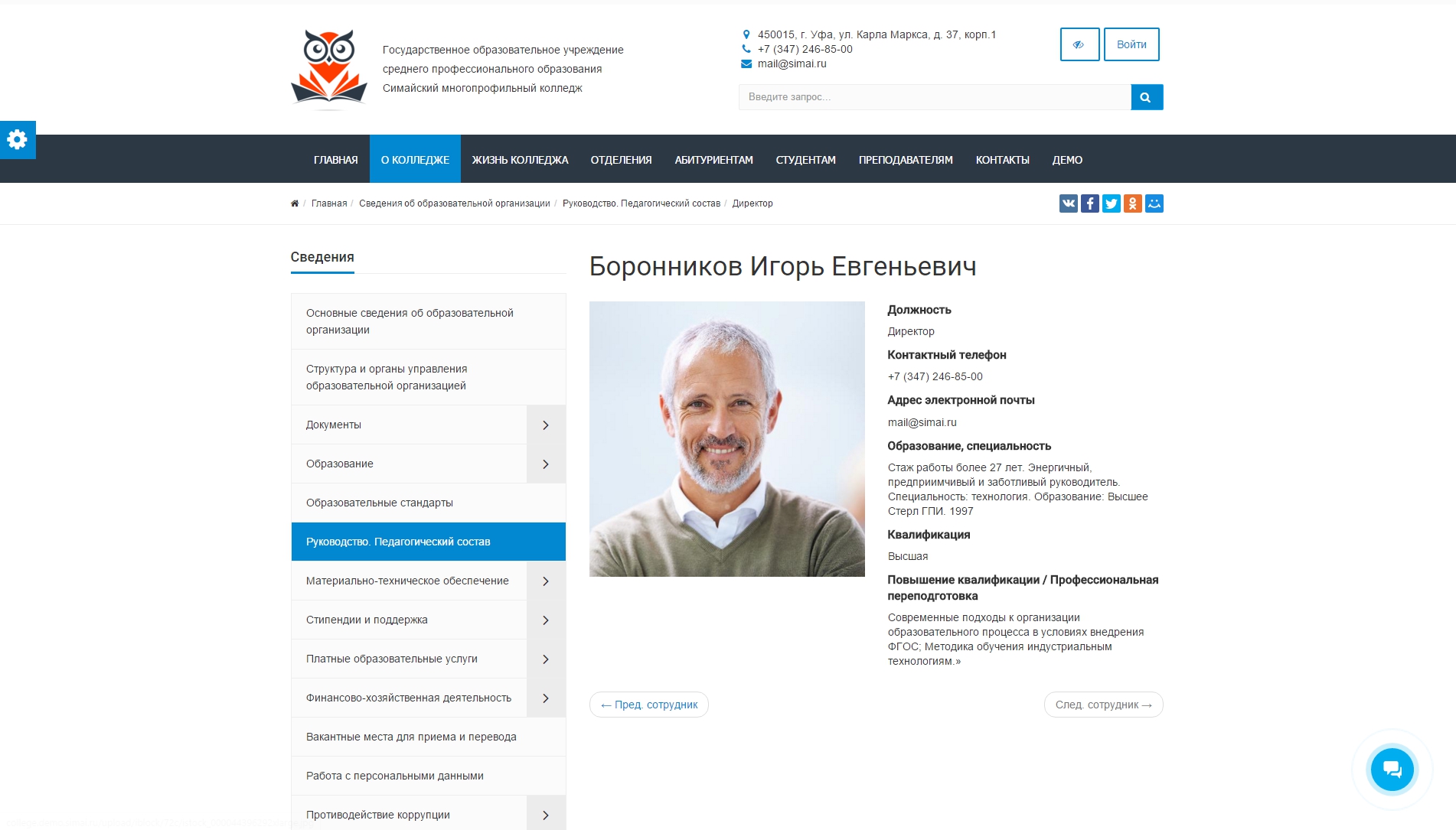 - Демонстрационная версия сайта https://college.sf2.simai.ru/