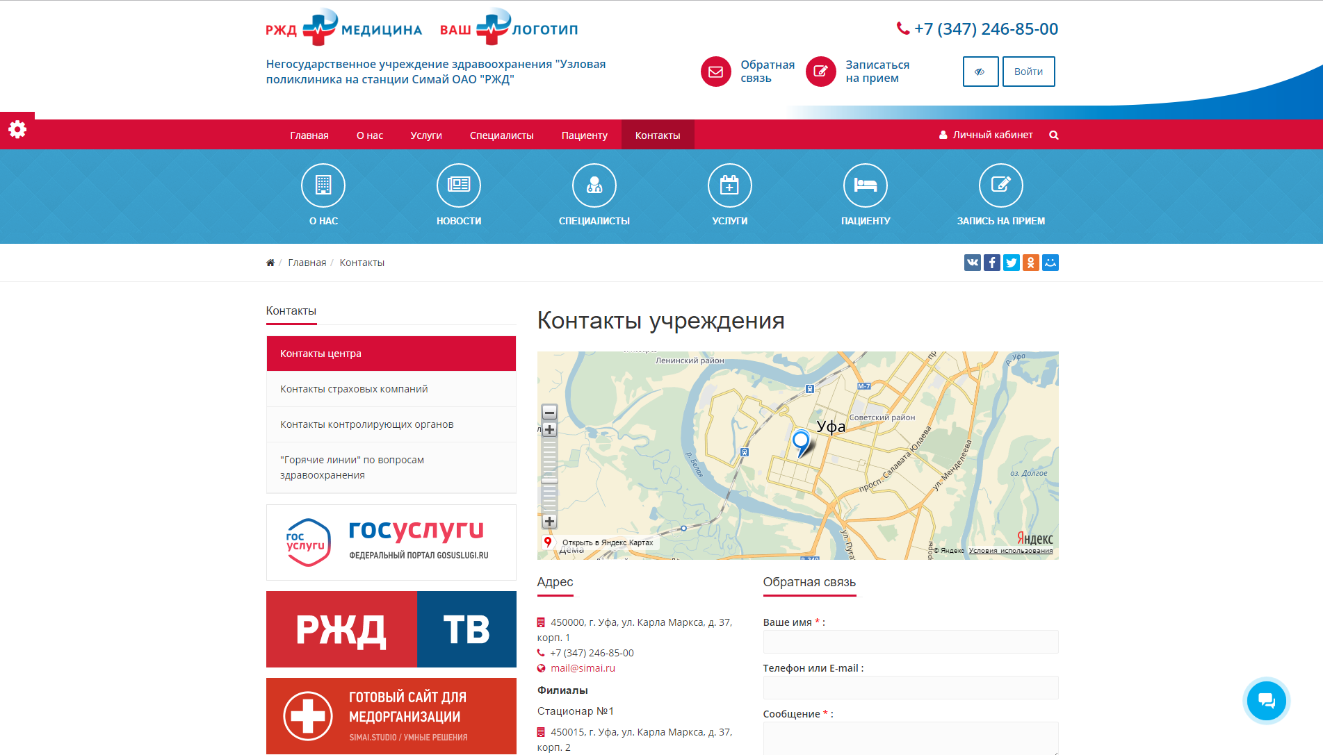 - Демонстрационная версия сайта https://medrzd.sf2.simai.ru/