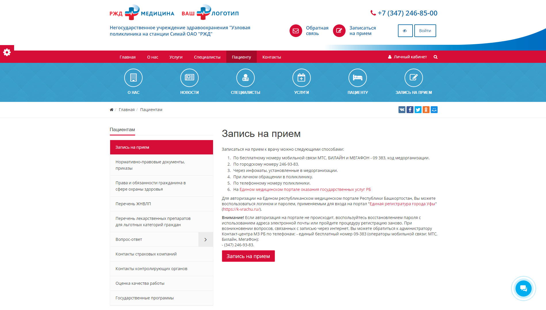 - Расписание специалистов и онлайн-запись на прием.