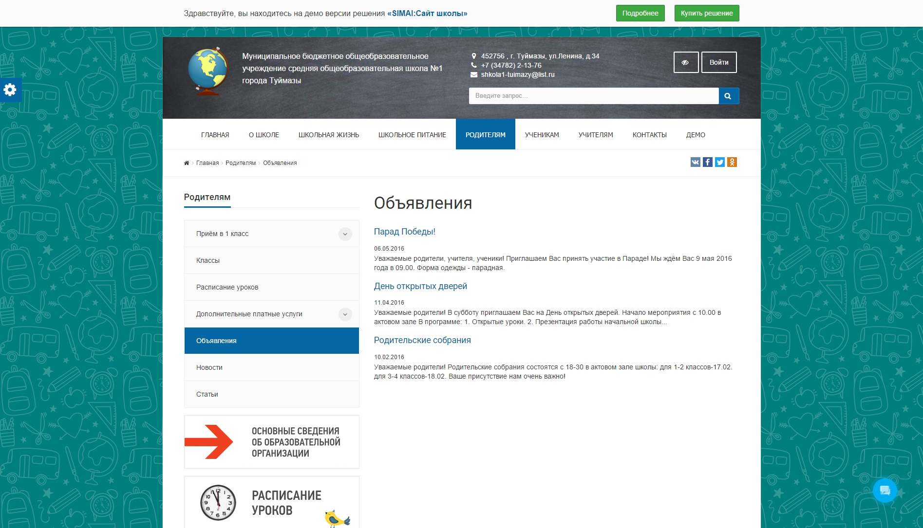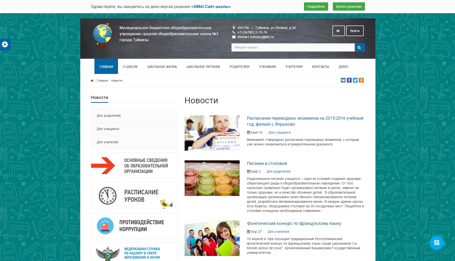 - Демонстрационная версия сайта http://school.sf2.simai.ru/
