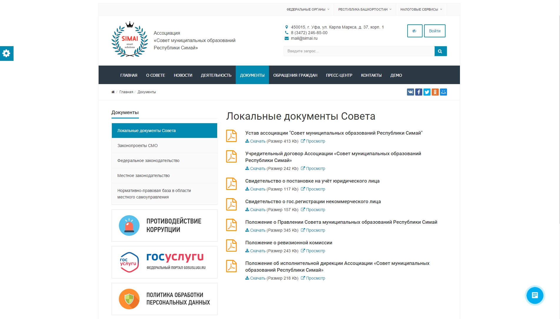 - Раздел «Документы» позволяет публиковать все необходимые документы с возможностью просмотра и скачивания файлов различных форматов.