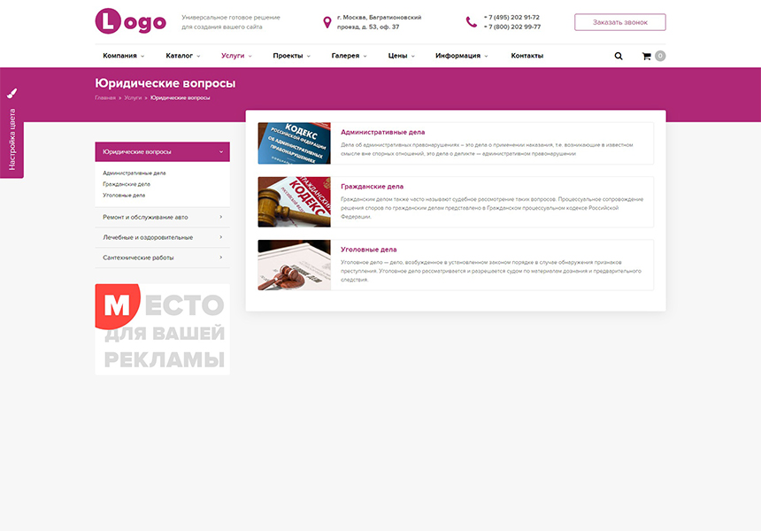 - Выбор вашего любимого цвет для всей гаммы сайта.