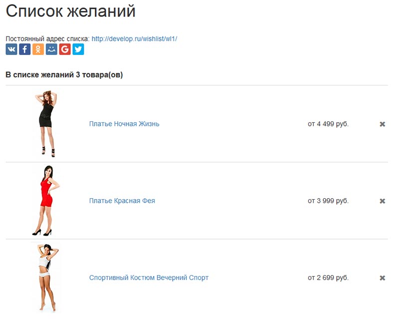 Список желаний (избранное, wishlist) - это отложенный список подарков. Список желаний, размещённый в социальных сетях или отправленный друзьям по почте - будет способствовать продвижению интернет магазина.