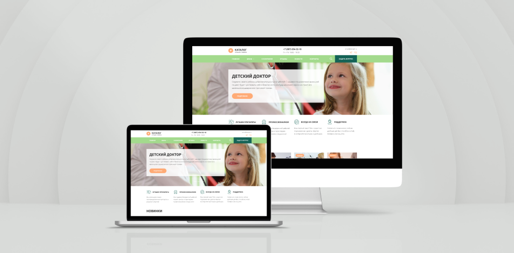 Универсальный корпоративный сайт с услугами детских врачей. Современный сайт со всем нужным функционалом идеально подойдет для клиник, специализирующаяся на услугах врачей: